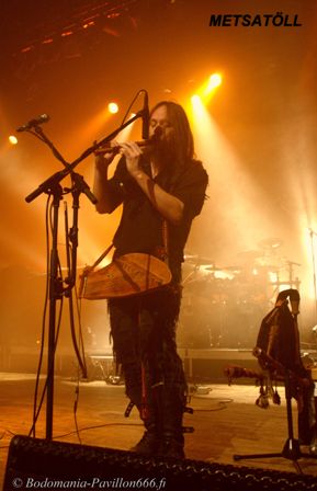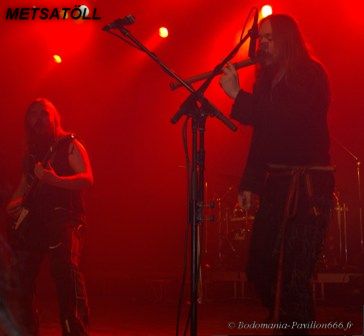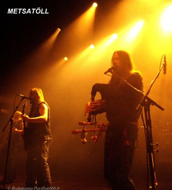 Mais la suite ne se fait pas attendre. METSATÖLL que vous aurez peut-être découvert cet été à l'occasion du "Metalcamp" ou du "Wacken open air", prend place, accompagné par leurs instruments traditionnels. Au programme, du Folk Metal Estonien porté par leur dernier opus en date, "Äio". "Tuletalgud" ouvre les festivités. Guidé par des riffs entraînants, des chœurs fédérateurs et une flûte mélodieuse, quelques notes de cornemuse viennent compléter le tout sur "Vaid Vaprust". Et dans cet exercice là, on peut dire que Lauri Varulven maitrise non pas son, mais ses instruments. Alternant avec une grande facilité le torupill, le kannel et autre flûte atypique... sans oublier sa guitare! Le multi instrumentiste soutiendra également Markus Teeäär au chant, sur plusieurs titres. Au cours du set, la guitare de Markus Rabapagan n'est pas en reste, amenant ainsi des lignes plus agressives aux compositions qui restent globalement assez posées. C'est donc dans une ambiance plutôt détendue que s’enchaîne les titres. Le public est réceptif et le groupe se donne à fond jusqu'à ce final intense, "Metsaviha Viha 2", durant lequel nous assisterons à un chant traditionnel entraîné par des chœurs masculins très réussis. Une atmosphère shamanique vient alors achever cette prestation, plus Pagan que jamais.