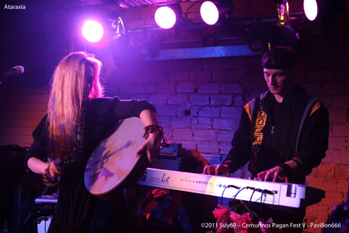 C'est ATARAXIA qui clot la petite scène ce soir, on revient à des choses plus proches de ce que nous a offert Boann en ouverture du festival, ce qui étonnera le plus sera probablement la différence de style des différents musiciens, avec notamment le claviériste en jogging alors que la chanteuse porte une robe ayant un aspect celte. Ceci n'entrave en rien la qualité de la musique qui s'offre à nos oreilles, encore une fois, ce n'est que le calme avant la tempête...
