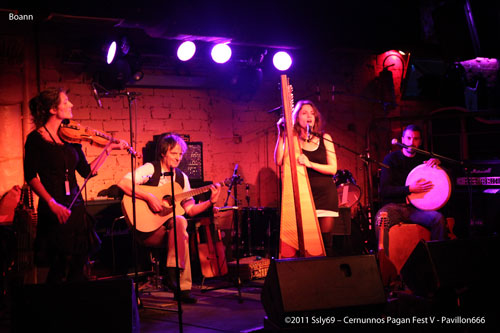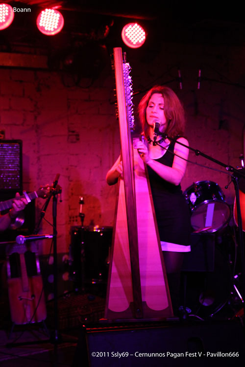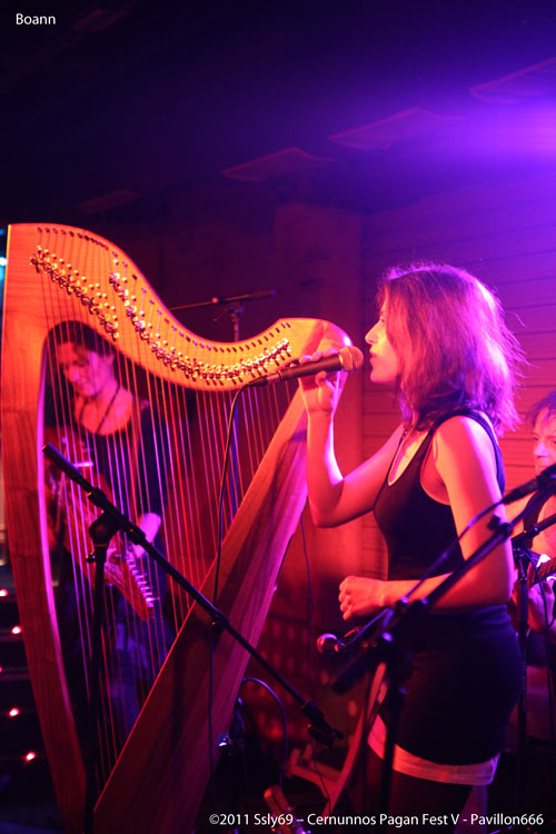 C'est donc sur la petite scène que le groupe français BOANN ouvre le bal, les instruments placés sur scène annoncent clairement la couleur : la violence attendra avant d'investir les lieux. En effet, c'est une harpe qui, placée au centre de la scène accueille le spectateur, alors qu'à cette heure le métalleux moyen est encore endormi un dimanche normal, et se fait encore timide. C'est donc devant une salle ayant du mal à se remplir que le groupe entamme les festivités. La qualité musicale et la vocalise de la chanteuse ont pourtant vite fait d'attirer une bonne partie des personnes déjà présentes à la Machine, pour leur plus grand plaisir.