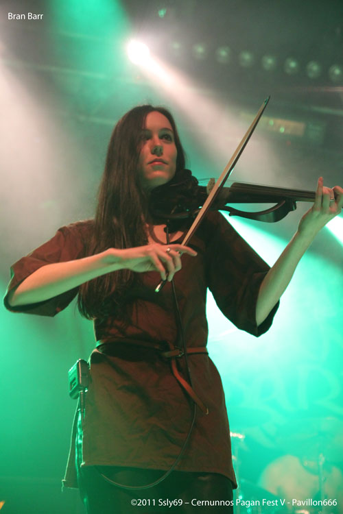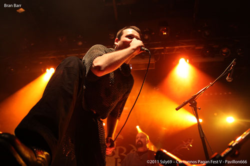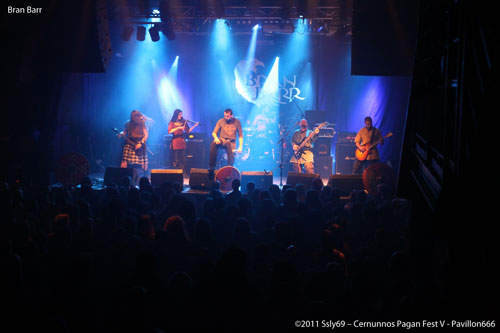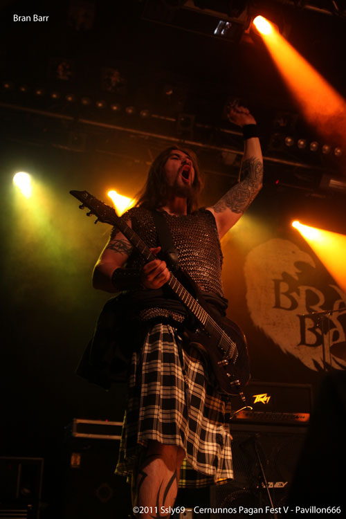 Pas le temps de se remettre de ces émotions que BRAN BARR prend place dans la salle principale, et le ton reste fort, l'ouverture de rideaux se fait sur des boucliers et un groupe vêtu de cotes de mailles. C'est donc le dernier groupe français de le soirée qui montre que nous ne sommes pas en reste en matière de folk métal, la salle est bondée et le public est vraiment entrainé par cette musique, qui mêle douces mélodies et passages plus brutaux. Le violon et la flute se marient très bien au reste des instruments et la voix du chanteur a de quoi faire bouger.