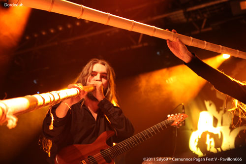 Le set n'est pas encore terminé que DORDEDUH a déjà pris place en haut, la encore les instruments celtes ont une bonne place sur scène, encore une fois, le public se masse rapidement. Les roumains nous offrent un concert de qualité, mais qui manque quand même un peu de jeu scenique, surtout après ce que nous avons déjà pu voir aujourd'hui. Ceci n'empêche pourtant pas d'apprécier la partie musicale.
