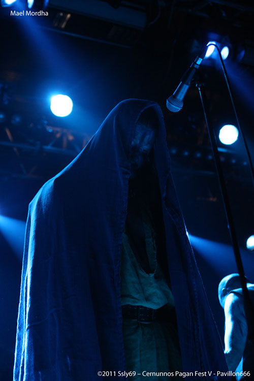 Le set de Boann n'est pas encore terminé que c'est MAEL MORDHA qui prend place sur la grande scène, la stature du groupe, le silence pesant et le fait que le chanteur se présente sous une cape laissent présager les choses biens plus sombres qui vont suivre. Même l'intro à base de flûte qui nous est offerte par le chanteur ne trompe en rien le public. Le changement de ton ne se fait pas attendre, le nombre croissant de spectateurs est encore une fois conquis. La réaction du public vient rapidement et la fosse commence à se remplir et à bouger en rythme, la barbarie prend enfin place! Le son de corne a bien réussi à trouver oreille à son écoute et les festivités peuvent commencer. Le set est de qualité et certains trouvent que la durée de celui-ci est limitée, mais il faut bien laisser la place aux suivants.