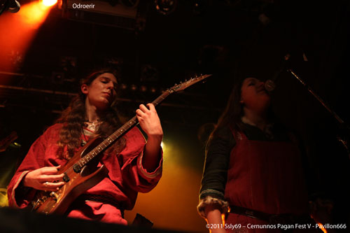 Nous passons ensuite à ODROERIR toujours sans pause, la mandoline est sortie pour l'occasion. Le groupe est énergique et même la partie traditionnelle donne envie de headbanger! Encore une fois le public est conquis par une telle qualité, les allemands nous montrent tout leur savoir faire acquis en plus d'une décénie d'expérience. Les instruments modernes et traditionnels s'accordent parfaitement, vraiment de quoi être sous le charme.