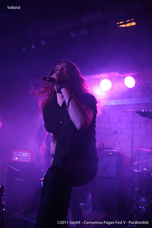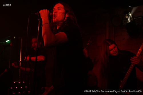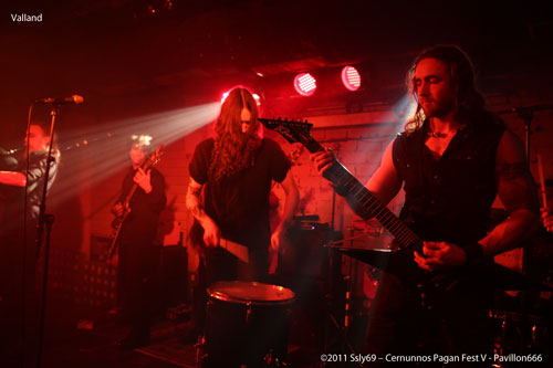 Retour à la salle basse pour festoyer avec VALLAND, seconde formation française de la soirée. C'est sur un air de cornemuse que le jeu prend place, c'est très agréable, et l'energie du groupe remet le public d'aplomb pour encore plus de puissance. La quiétude régnant en ces lieux suite au précédent concert, il fallait au moins ça pour se remettre dans le bain. La petite salle est bondée, le foule s'est massée pour assister à cette prestation d'excellente qualité.