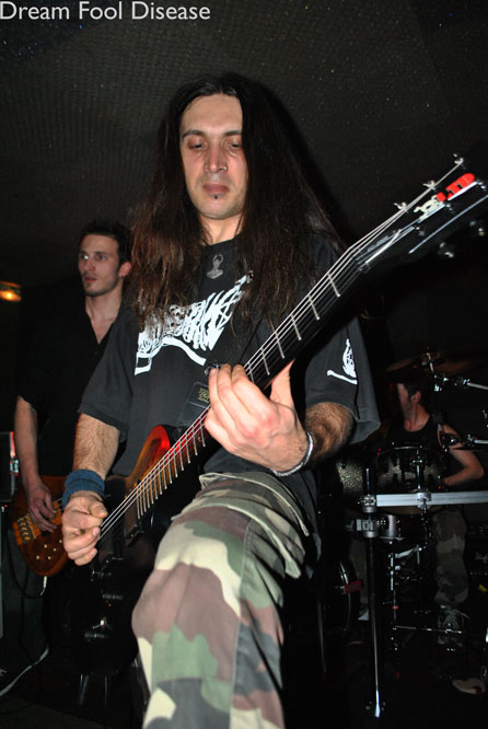 Il est déjà presque minuit quand vient le tour de DREAM FOOL DISEASE. Le groupe a su évoluer au cours de sa carrière pour aujourd’hui nous proposer un mélange de death, thrash et une petite pointe de black de temps en temps. Les compositions sont bien rodées et le show ne manque pas de dynamisme., DREAM FOOL DISEASE ne fait décidément que s’améliorer avec le temps et le show de ce soir ne fait pas exception à la règle. Au programme, une petite reprise de SEPULTURA, et le tour est joué, le public ne s’y sera pas trompé et l’ambiance est encore une fois au beau fixe.