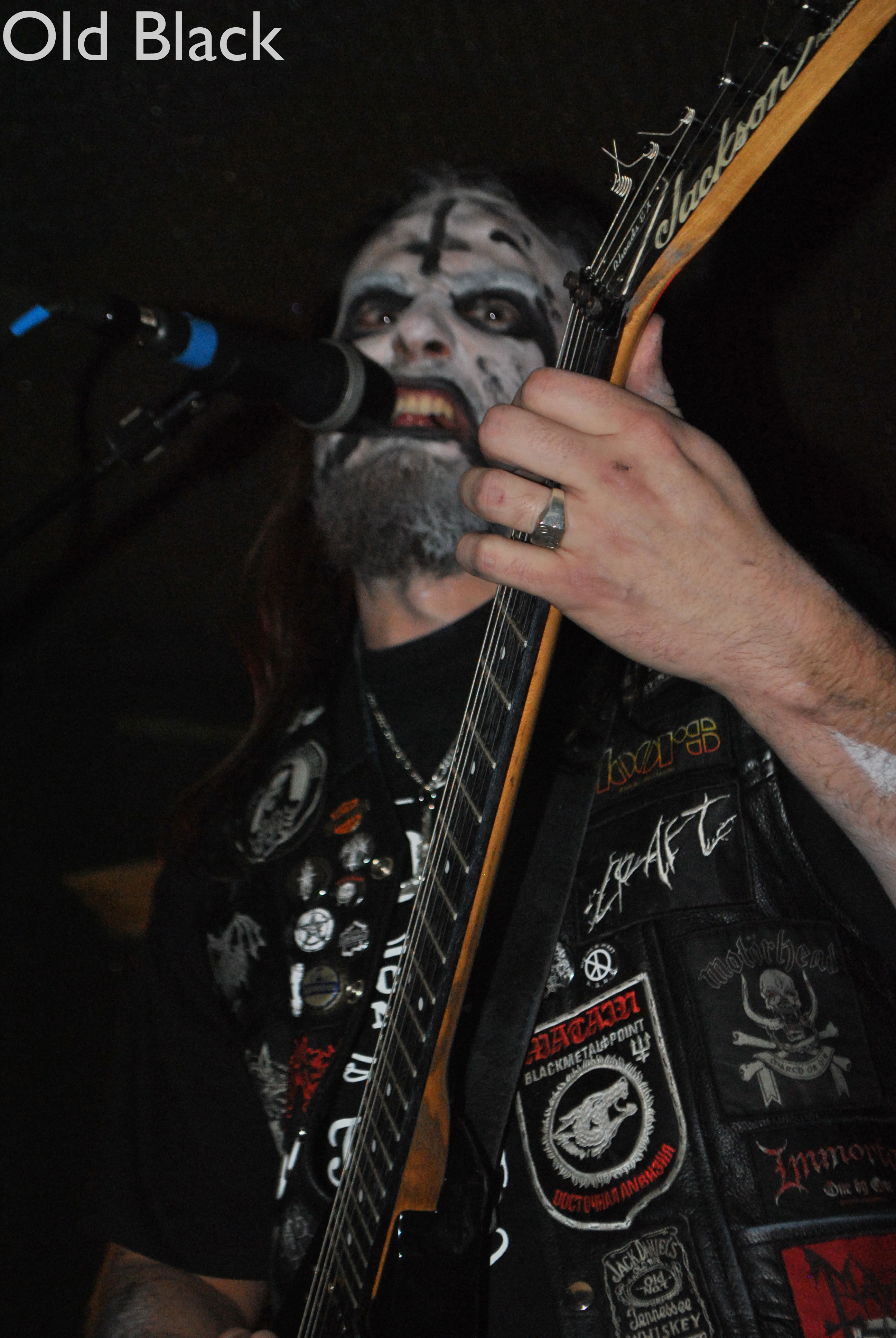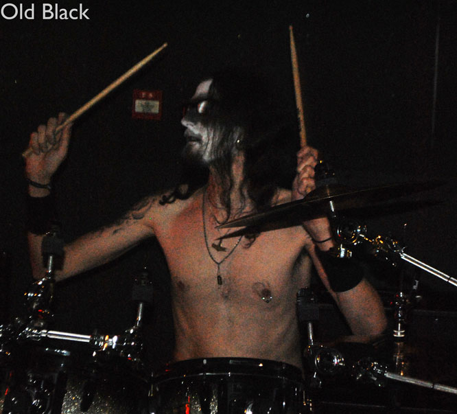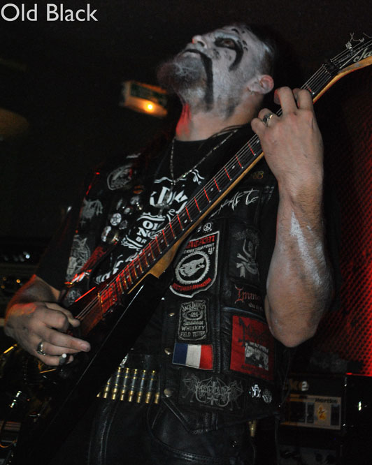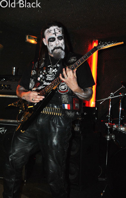 Cette fois ci pas de voix féminines, OLD BLACK investit les « planches » corpse paint et veste patchée à l’appui. Petite surprise pour ce soir, le groupe ne sera représenté que par deux membres, ces derniers ayant viré leur bassiste une semaine avant. Qu’à cela ne tienne, cela ne va pas empêcher OLD BLACK de nous déverser son black metal en plein visage. Très teinté thrash, ce dernier n’a pas à rougir, le show sera puissant et sans concessions. Il est rare de voir un groupe faire preuve d’autant d’authenticité, même dans la scène black metal. Ici pas de fausse tête de méchant où pleurnicheries improvisées, on joue et c’est tout. Enchaînant grimaces, tirages de langue et rôts, le frontman et fondateur Old ne fait pas de fioritures et c’est ça qu’on aime dans le black metal ! Notons les petites reprises de TEMPLE OF BAAL et MOTHORHEAD (« Orgasmatron ») et tout cela nous donne un excellent show black metal à revoir.