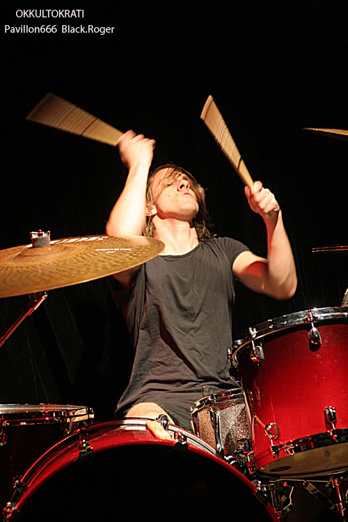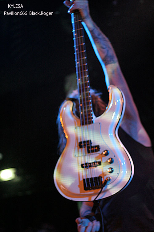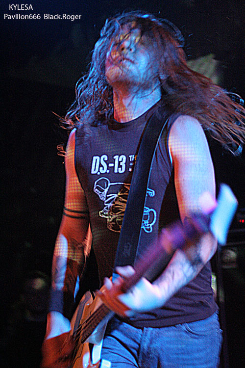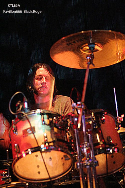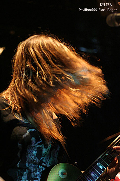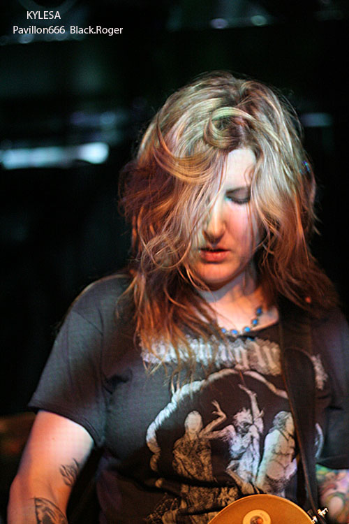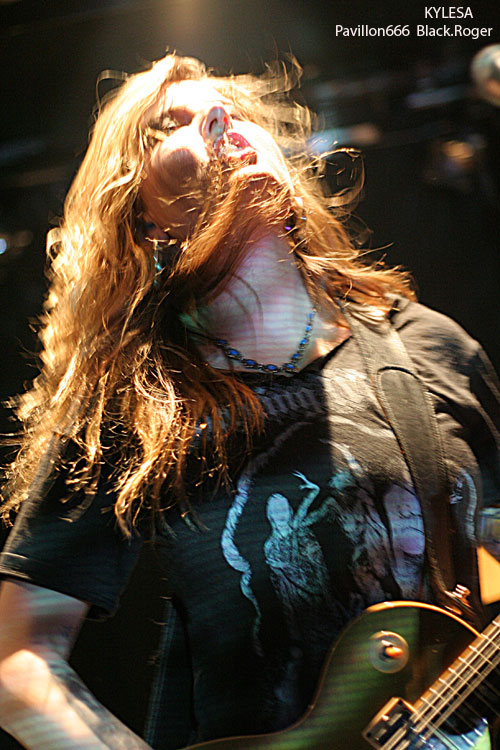 Après le changement de plateau habituel, tout le monde vient se coller contre l’estrade pour prendre part à la grand’messe malsaine de KYLESA. Malgré la présence de deux batteries sur scène, ce n’est pas THE ALLMANN BROTHERS qui s’installe devant nous mais la bande à Laura, grande prêtresse du quintette Georgien qui démarre son set avec outre les deux batteurs, un renfort de percussions tribales pour nous mettre dans le bain d’un Sludge marécageux et psychédélique aux forts accents doom. C’est sauvage, parfois brut et arraché, parfois clair et incantatoire suivant la voix un peu plaintive de la frontwoman qui fait « miauler » sa six cordes de façon presque indécente. Le bassiste tient un grand rôle entre les deux batteries et va aussi lancer des samples tendus et ambiancés sur les claviers. Au travers des titres présentés ce soir, le groupe s’amuse à nous martyriser les tympans avec des compositions brutales et rapides extraites de « Static Tensions » (2009) pour revenir à des élans plus travaillés, plus calmes et hypnotiques proposés dans son dernier opus en date « Spiral Shadow ». la salle de concert bien remplie semble boire littéralement à la source profonde de la musique de KYLESA qui a su se faire tantôt brutale et meurtrière, tantôt plus exotique à la recherche de sonorités bien étudiées mais toujours dérangeantes pour notre plus grand plaisir. Voyage intemporel pendant plus d’une heure avec ces sorciers de la musique poisseuse, mais jouissive qui nous ont emmené loin, très loin dans ce métal sensuel et plombé tout à la fois. Excellent tout simplement.