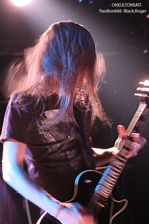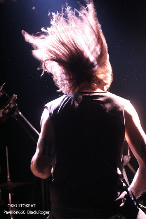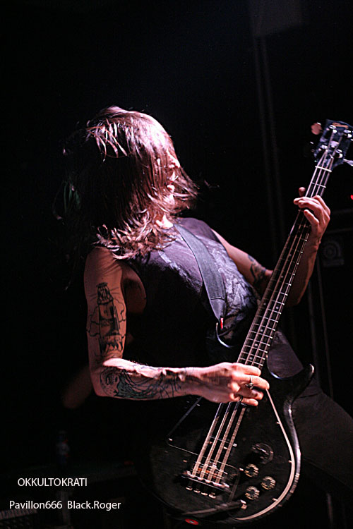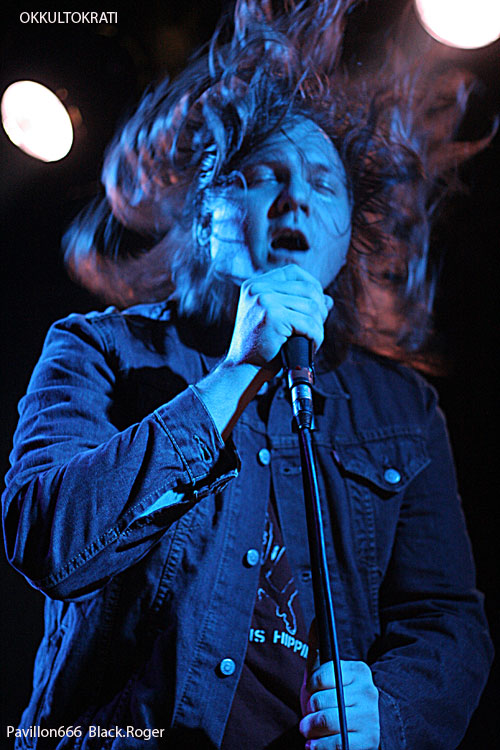 KYLESA au Clacson de Oullins près de Lyon, voici un événement Sludge enfumé à ne pas manquer c’est certain. Alors, dès 20 heures trente à l’ouverture des portes, les fans de musique puissante, psychédélique, lourde, « doomesque » et métallisée en diable, affluent dans la belle salle de la M.J.C qui à eu la riche idée de programmer ce groupe US célèbre en tournée accompagné de OKKULTOKRATI, des Norvègiens particuliers à découvrir en live. Justement, peu après vingt-et-une heures, le quatuor d’Oslo lance le son sans préambule inutile et d’entrée de jeu les musiciens nous collent contre les murs avec des envois complètement dérangés, brutaux, tranchants sur une base de lourdeur « Sabbathienne ». Un batteur épileptique semble mener la danse avec un rythmique plombée mais très inventive au demeurant. Le guitariste et le bassiste en font des tonnes en gesticulant sur les planches, complètement « allumés » et dérangés se mêlant même au public du premier rang à l’occasion. Ils encadrent un chanteur statique et charismatique dont les vocaux plutôt à tendance black-doom sont rugueux et écorchés. Leur musique reflète une multitude d’influences et l’on pourrait la comparer à la fille bâtarde d’une copulation improbable et sauvage entre un DARKTHRONE, un SAINT-VITUS et un CELTIC FROST, enfin quelque chose de ce genre là. Le combo des pays Nordiques pratique donc un « Metaphysical Black n’ Roll » selon ses dires, on veut bien adhérer à ce propos pourquoi pas. En tous cas ce fut une belle découverte assez époustouflante pour ma part avec cette formation atypique, démesurée de rock n’ roll diabolique qui nous a démonté la cervelle pendant un bon moment. Ce fut une bonne baffe peu ordinaire, ça fait du bien et ce soir ce fut donc très bien, une vraie tornade est passée.