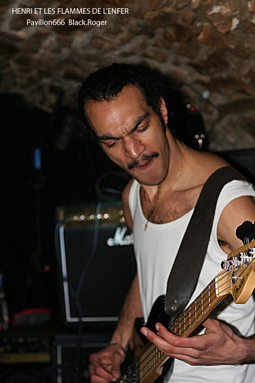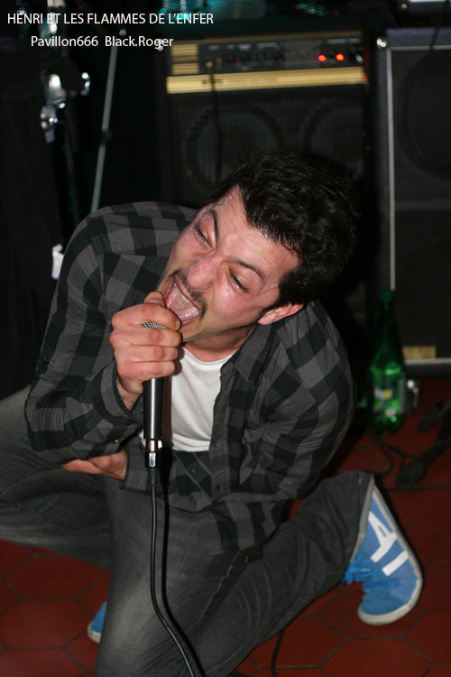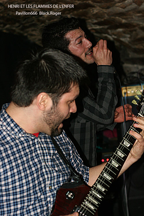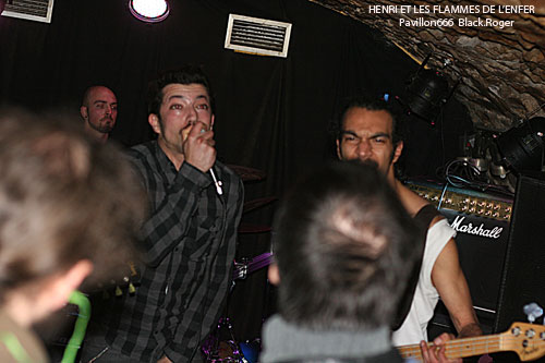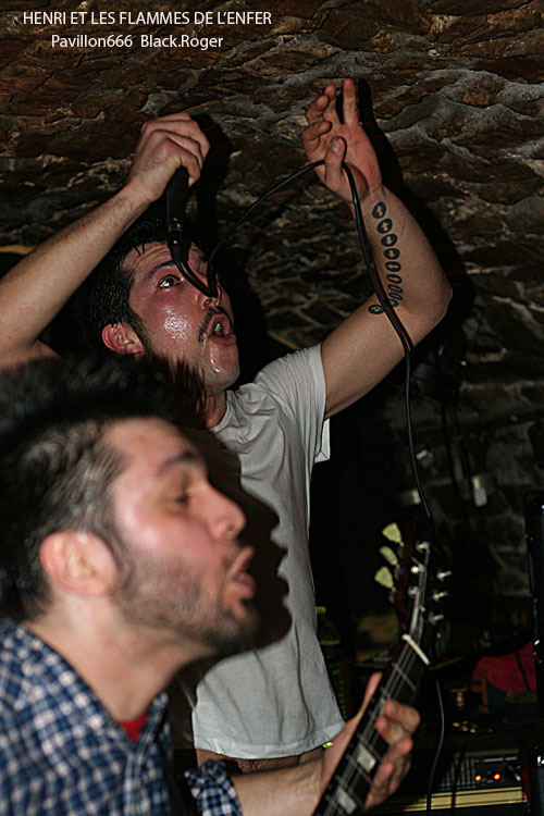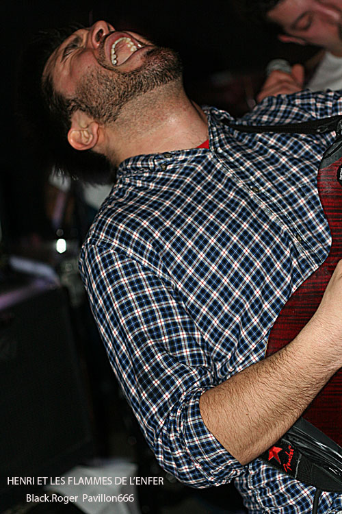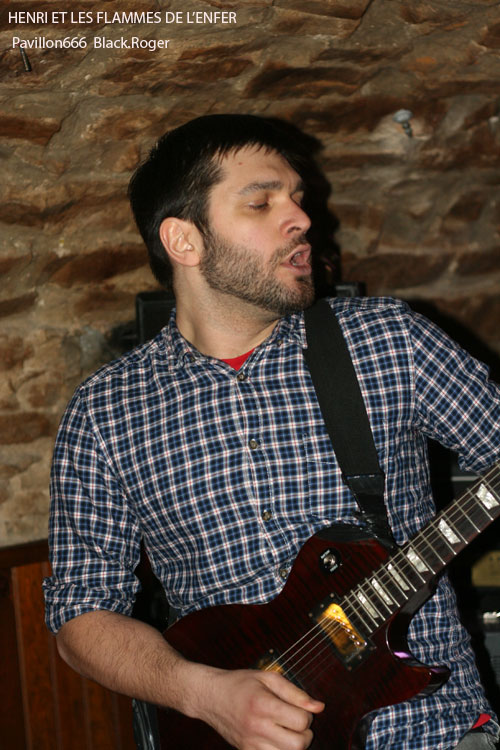 Vers 21 heures 30, la formation invitée venant de Toulon, HENRI ET LES FLAMMES DE L’ENFER se décide à lâcher les décibels, diable ! Ce quatuor sudiste est en fait une boule de nerf musicale se complaisant dans un punk/hardcore (post ?) d’une efficacité redoutable. Le son est bon malgré la configuration exigüe des lieux. Les compositions sont variées, et entre calme relatif avant l’orage et déluge saignant nous collent au plafond voûté. C’est brutal, souvent déstructuré, mais toujours accrocheur avec un groove sous-jacent qui ne laisse personne indifférent. Alors forcément quand c’est bon et bien interprété, on aime. On aime les riffs cinglants et tranchants, la basse ronflante, la polyrythmie de batterie et le frontman Henri qui vit ses textes bien travaillés sous une carapace décousue. Le groupe s’éclate et nous avec sur une chorégraphie démente et extrême. Après le dernier morceau, la dernière déflagration sonore, le groupe distribue une pile de démos, sa première démo 3 titres percutante « Brutal Arcade Mode », sympathique !