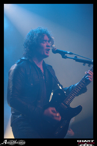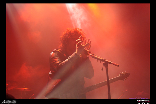 CLOVERSEEDS est le groupe français de l’affiche. Il accompagne le groupe sur sa tournée à travers l’hexagone. C’est appréciable de découvrir qu’il n’y a pas que du hardcore et du gros rock en France. Dorénavant, il faudra aussi compter sur ce groupe de Clermont-Ferrand et ses multiples influences. Définir ce groupe n’est pas évident. On y trouve de la pop façon RADIOHEAD, du gros rock, une dose de metal, mais surtout et avant tout un chanteur hors du commun. Ses capacités sont impressionnantes. Ce monsieur est en mesure de passer de chants clairs à vous donner la chaire de poule puis de monter magistralement en puissance. Il y a un certain côté MUSE dans cette façon de chanter mais comment dire, en beaucoup plus poussé, et supportable aussi… Les morceaux sont intenses, varient dans des ambiances très diverses. Bref, le tout sonne très complet et on comprend facilement pourquoi un tel choix a été fait. On a hâte de se replonger dans leur musique une fois le concert passé et l’effet d’ANATHEMA dissipé.