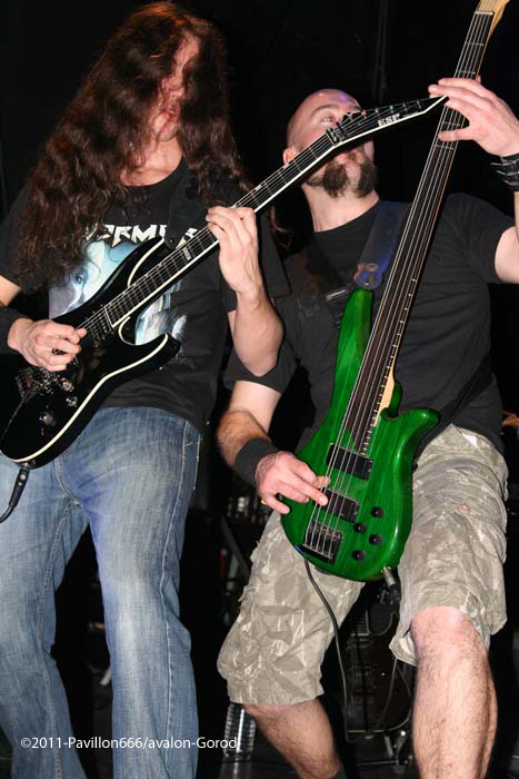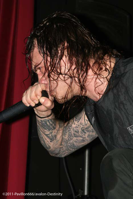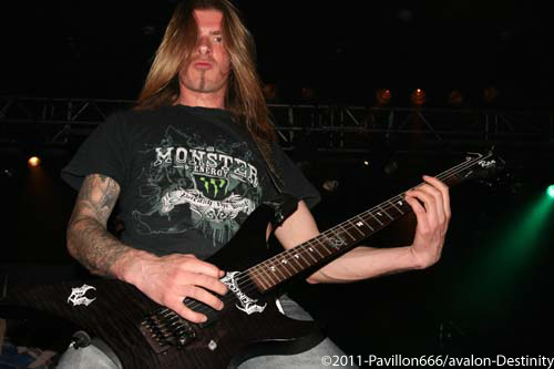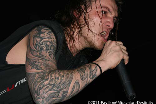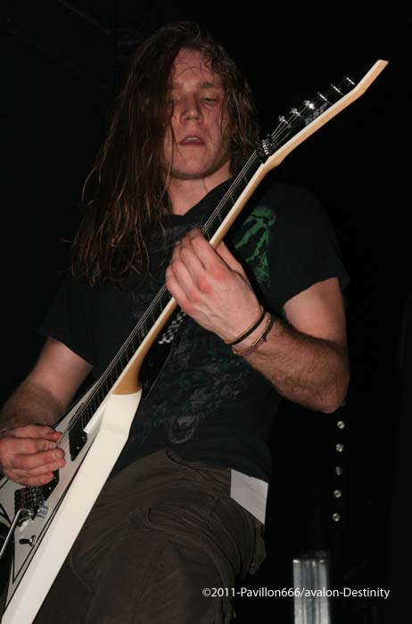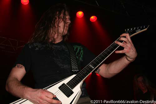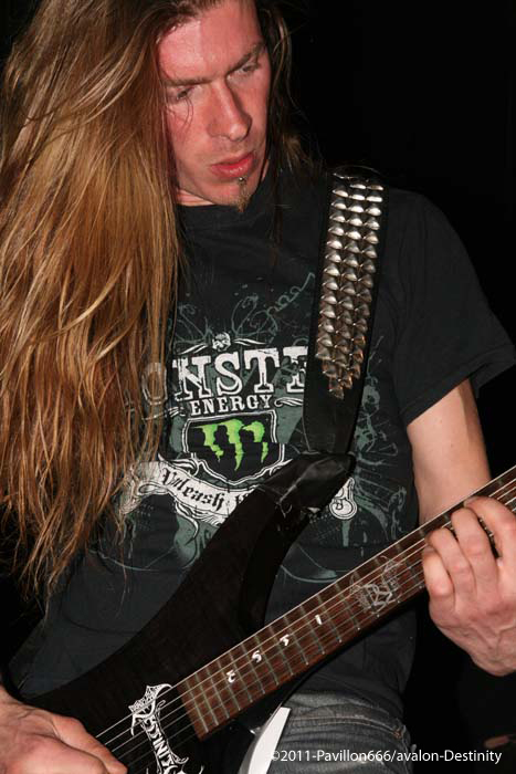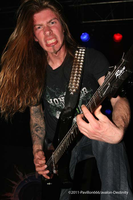 Destinity nous arrivent de Lyon, avec un maillot de l’olympique lyonnais, ultime provocation mais voyons ce que le groupe a dans le ventre. Et bien il faut avouer que Mick et sa bande assurent de façon impeccable avec un set puissant et carré. De nouvelles têtes au sein de cette formation avec un nouveau bassiste qui assure bien son jeu d’une basse lourde et pachydermique, et un guitariste qui joue également dans In arkadia. Mais comptez sur le trio fondateur pour distiller un black/death – certes classique – mais efficace et sans concessions. Venus défendre leur septième album (déjà), le public aura répondu favorablement à leur set rempli de testostérone.