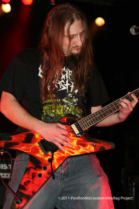Car oui, le carton rouge principal de la soirée sera à mettre du coté des lumières, j’allais dire "comme d’habitude". N’y a t il pas des professionnels pour s’occuper de cet « art » à part entière ? Car bidouiller des lumières - quasi inexistantes au passage -, gâchera la soirée avec des lights trop basiques et très mal utilisés (les musiciens dans le noir, le fond éclairé…). Le son lui sera en fonction des groupes, du bon au passable, dommage que ce Fest n’ait pas été plus préparé du coté son et lumières. Les groupes, c’est bien, le reste ne devrait pas être en option. Passé ce petit passage d’agacement, voilà MINDLAG PROJECT, les organisateurs du show et groupe de la région. Alors autant j’avais aimé leurs débuts, autant là je ne comprends plus trop. Le groupe a de la volonté, de l’envie, mais voilà, le son est vraiment trop brouillon et surtout trop fort sur les guitares, du coup, le chant est inaudible, sans parler du violoncelle électrique calé…au plein milieu de scène et qui n’aura servi strictement à rien. Dommage donc car leur metal « éclectique » aurait pu être intéressant si dans les passages « atmosphériques » ou du moins plus calmes, le violoncelle aurait eu toute sa place. Mais la, le coté inaudible fait que les passages plus lents et d’ambiance, ne faisait que la part belle à une guitare répétitive et du coup ennuyeuse. Je pense que le groupe gagnerai en ne montant pas le son et en jouant plus subtil les différentes composantes de sa musique, quoi qu’il en soit le public et les collègues sont venus en nombre pour les soutenir, et le groupe possède un réel talent si toutes les conditions jouent toutefois en leur faveur.