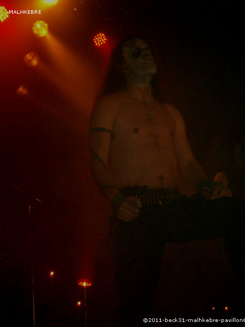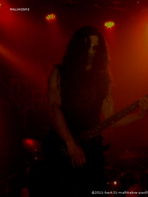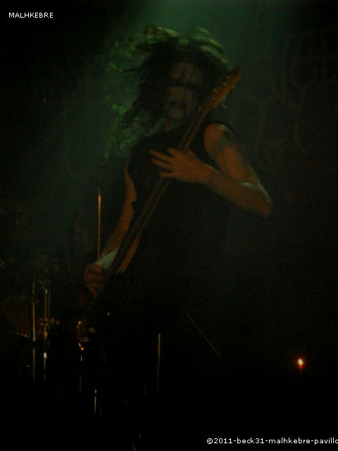 Après cette bonne surprise et une bonne demi-heure d’attente, les spots rouges font leurs apparitions, la fumée envahit la scène et les cierges s’embrasent, et MALHKEBRE envahit la scène. Après une longue introduction instrumentale macabre et inquiétante, nos maquillés toulousains démarrent et exécutent un black métal efficace et énergique, à caractère religieux. Un rythme soutenu, un chant venant d’outre tombe nous envoie au fin fond des ténèbres. Set argumenté de paroles très porteuses et durant 45 minutes, MALHKEBRE livre une bonne prestation et a conquis le public indéniablement. Un show original autant visuel qu’instrumental, une première pour ma part qui m’a attiré. Cà vaut le coup d’être vu et écouté.