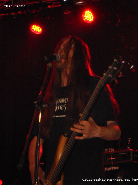 Vers 21h30, il est temps d’accueillir le premier groupe de la soirée TRASHNASTY, venant en voisin et ouvrant les débats d’une salle bien garnie. En tout cas ces albigeois, très communicatif et exerçant un death métal frais et dynamique, donne un set de très bonne facture. Une batterie rapide et puissante abreuvée de riffs diaboliques et d’un chant mixte ou les deux compères s’en donnent à cœur joie, quelques relents trash bien sentis, bref la prestation du trio est vraiment excellente. Des morceaux de qualité, très attrayants et visuellement très efficaces. On assistera d’ailleurs aux premiers pogos de la soirée. Quarante minutes de show et TRASHNASTY nous fait ses adieux sous des acclamations méritées. Un combo à suivre et en voir en live sans aucun doute.