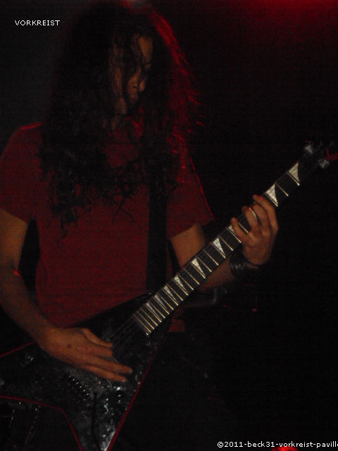 Après une légère attente dû à un problème de son, la salle est maintenant remplie avec l’arrivée de quelques retardataires et les parisiens de VORKREIST déboulent dans un death métal tonique déclenchant des pogos dès les premières notes. Il faut dire que le quintet ne fait pas dans la dentelle, c’est énergique, sauvage, çà bouge dans tous les sens avec passages black, trash, des compos bien variées bref un ouragan s’abat sur les bords du Tarn. De plus la complicité de la bande avec le public est des plus présentes rendant une ambiance très électrique et slams, pogos y vont de leurs suprêmes. VORKREIST n’est pas venu pour rien et son contenu global a été des plus abouti. Le quintet a mis le feu et beaucoup aurait aimé que cette partie dure plus longtemps, mais VORKREIST a marqué les esprits et va faire parler de lui sans aucun doute.