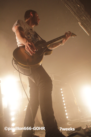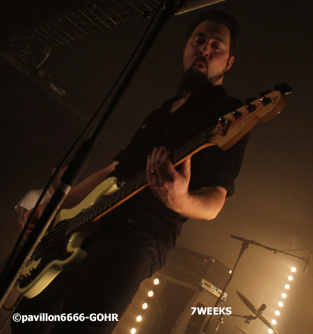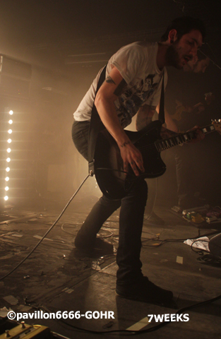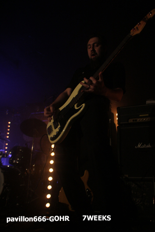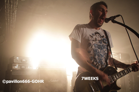 Viennent ensuite les limogeais 7WEEKS qui, depuis un an, ont fait couler beaucoup d’encre avec l’excellent « All channels off », un premier album acclamé par l’ensemble de la presse Rock-Métal pour son efficacité et son caractère dérangeant. Devenu depuis peu un trio, la formation n’en est pas pour autant affaiblie musicalement, ce qui hélas n’est pas le cas de ses prestations scéniques. Certes, sa musique reste écrasante, entre VOLBEAT, MUSTASCH et METALLICA, mais l’absence d’un second guitariste donne une cruelle impression de vide. Le bassiste et le guitariste se partagent le chant, plantés devant leur micro et sont, en fin de compte, assez statiques. C’est là où l’intervention d’un quatrième larron serait nécessaire, afin de remplir le vide laissé sur la scène, qui, soit dit en passant, n’est pas des plus grande. Bref, les amateurs de Stoner en ont pour leur argent, mais il manque cette petite étincelle, ce grain de folie qui ferrait de 7WEEKS une référence française du genre.