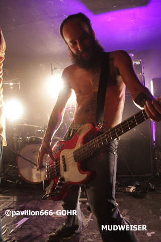 Autant nous pouvions comparer 7WEEKS à plusieurs formations célèbres, autant MUDWEISER, lui, ne ressemble qu’à l’une d’entre elle : MOTORHEAD. A l’instar de la bande à Lemmy, nos français proposent un Rock extrêmement gras aux relents Punk, lorgnant allégrement sur le terrain du Thrash. A l’inverse de 7WEEKS, notre quatuor se distingue par une présence à faire pâlir de nombreux groupes professionnels. Entre un chanteur extravaguant, du type Redneck sous cocaïne et un bassiste surexcité, sorti tout droit d’une formation Hardcore, MUDWEIZER semble mené par de joyeux lurons qui pourtant ne vous donnent pas envie d’être leurs copains, comme s’ils pouvaient à tout moment vous placer un couteau sous la gorge. Finalement, le groupe mérite amplement sa position en tête d’affiche tant il parvient dès la première chanson à mettre la barre très haut et à ne jamais laisser retomber la pression. Un groupe à suivre, mais qui gagnerait à se détacher un peu de son influence principale.