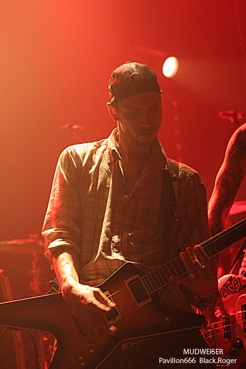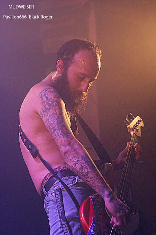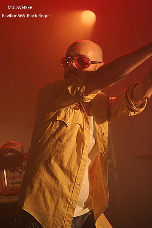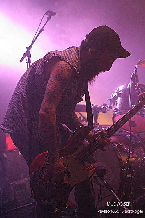 Pour un jour de semaine, l’affluence est bonne, et l’on sent des gens motivés se presser contre la scène au démarrage du show de la bande à Reuno. Reuno le frontman de LOFOFORA entre autres qui vient ce soir avec MUDWEISER (n’y voyez pas une quelconque publicité pour une certaine boisson US !), nous abreuver de bon son bien gras, bien rock, bien métal, mais avec un peu de blues et même du rythm’n blues donc. Le combo semble sorti tout droit du bayou sudiste des states avec ses compositions aux accents psychédéliques quelques fois. Le métal prend souvent le dessus avec cette guitare décapante de Ole, cette basse au son énorme raclant les planches de la scène dans les mains de Jay complètement possédé, cette batterie groovy dirigée par Xav maitre des fûts. Et puis il y a le maitre de cérémonie et sa voix particulière, son charisme évident, son omniprésence sur scène. Des titres puissants, accrocheurs, destructeurs de neurones extraits du premier album en passant par un « She’s Like Cocaïne » extrait du nouveau vinyle « Drug Queens » entre autre, tout défonce ce soir même si Reuno prétend avoir fait un show approximatif en fin de set. Nous, on en reprendrait bien encore un peu, car ce fut excellent tout bonnement, quelle claque !