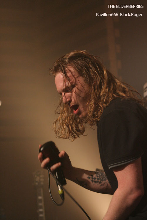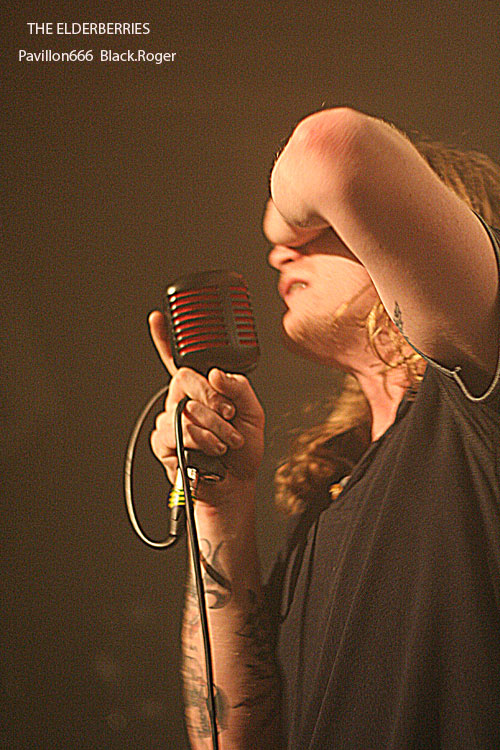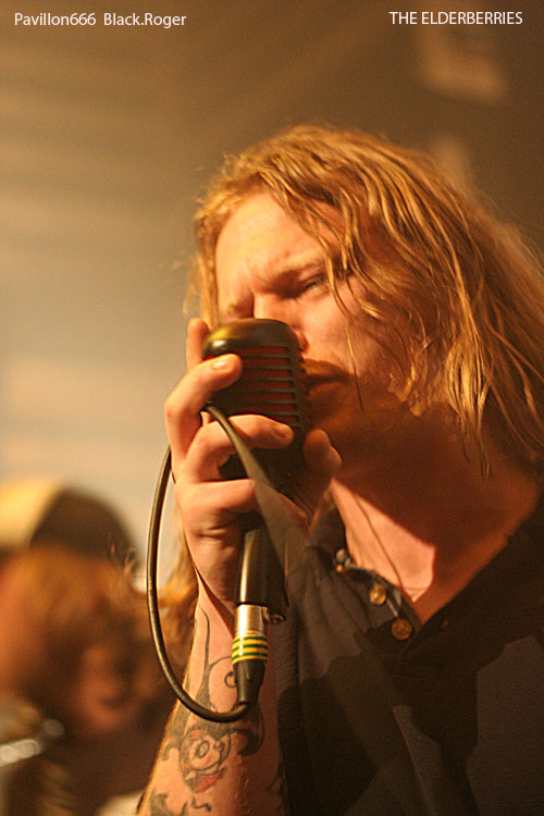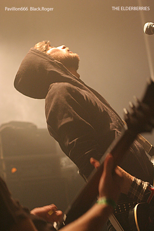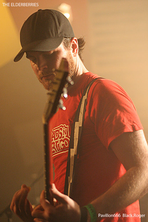 On s’installe, on s’installe, un peu plus longuement cette fois car nous allons accueillir un combo Franco/Anglo/Canadien de Clermont-Ferrand, THE ELDERBERRIES avec cinq musiciens sur les planches. Et ce quintette va nous clouer au mur dès les premiers titres avec une démonstration efficace de ce qui pourrait être du rock « biberroné » aux seventies avec un son énorme bien de notre époque et une présence scénique remarquable. Ici on navigue entre les (bonnes) influences de LED ZEPPELIN, des RAMONES et d’AC/DC. Les riffs « dirty » du groupe renvoient inévitablement au stoner, à la démarche primaire des STOOGES, bref du rock puissant, rebelle et psychédélique d’il y a une quarantaine d’années. Et sur la scène, ces compositions, ces allures déglinguées, ces envois ravageurs d’un autre temps, ça marche. ça marche tellement bien que le public du Marché gare en prend plein les conduits auditifs avec une certaine jouissance « rock n’rollienne » basée sur un certain mix rock/blues/punk historique au son bien actuel. Du neuf avec du vieux peut-être, mais on se prête au jeu facilement avec ces compositions racoleuses de toute façon. Bell découverte, pour moi évidemment, mais aussi pour la plupart des gens venus ce soir assister et participer à la grand’messe du rock, du vrai, du lourd, celui qui tache, le l’ai déjà dit, mais cette phrase résume bien la démarche proposée par l’affiche du Stoner Rise 2011.