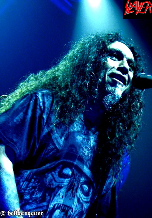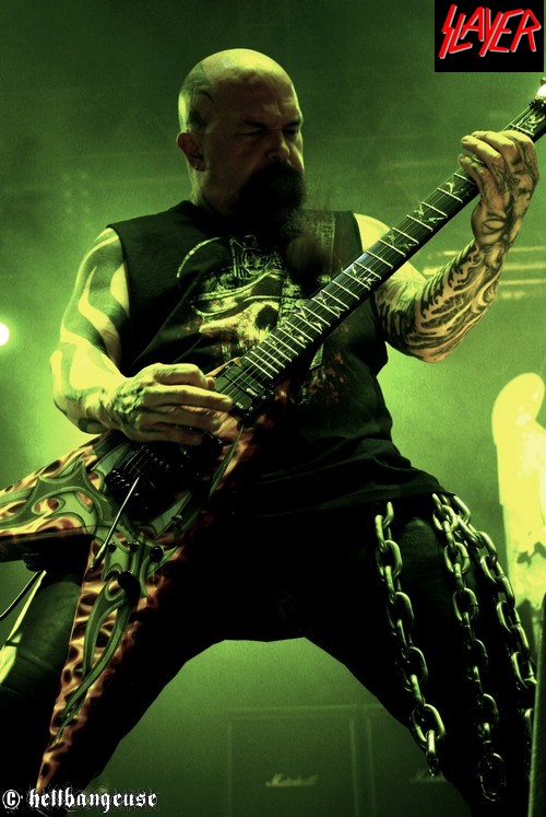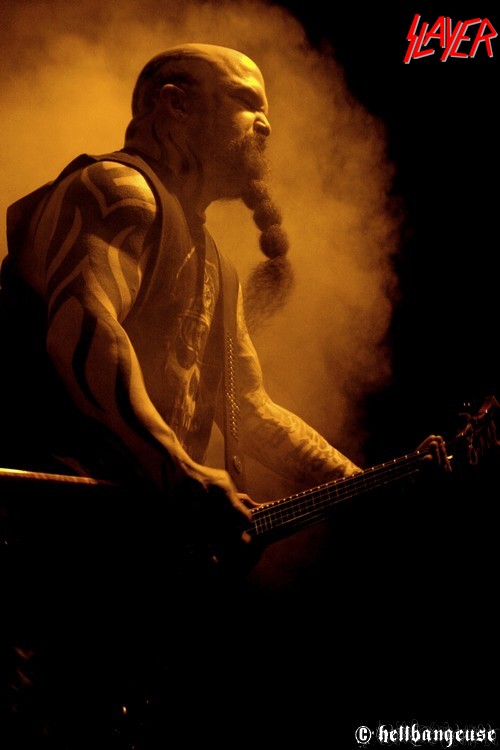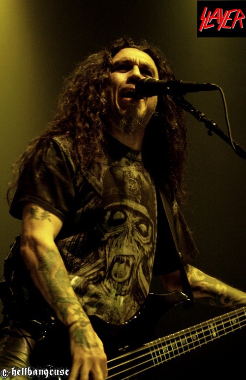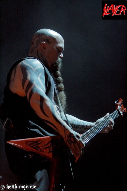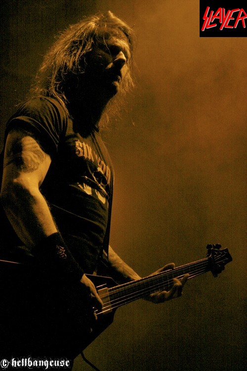 Après un changement de plateau assez rapide, il est déjà l’heure pour SLAYER d’enflammer le Zénith. Est-il vraiment pertinent de signaler ici la jubilation du public quand les Américains entament les premiers riffs de « World Painted Blood » ? Ce qui est sûr, c’est que cette jouissance n’est pas prête de s’estomper au fil des morceaux, tant le son du quatuor est démoniaque et sans concession. La frappe de fauve excité de Dave Lombardo conjuguée aux solos enragés de l’ami Kerry ne sont d’ailleurs pas loin de faire trembler le sol du Zénith. Et bien que Gary Holt (EXODUS) qui assure l’intérim pour Jeff HANNEMAN reste discret derrière sa guitare, Tom Araya nous fait bien vite oublier ce défaut de présence. La précision, la puissance et la justesse de sa voix sont tout bonnement bluffantes venant d’un homme qui n’était pas encore certain de pouvoir assurer la tournée il y a quelques semaines encore. A défaut de communiquer vraiment avec son public, le groupe préfère se concentrer sur les morceaux joués ce soir, avec une set-list complète et dynamique. Les classiques « Raining Blood », « South of Heaven » ou encore «War Ensemble » côtoient avec simplicité les plus récents « Snuff » ou « Americon ». Tous sont interprétés avec brio sur scène mais il faut bien reconnaître qu’ « Angel of Death » surpasse le tout. Tom Araya avec son incroyable hurlement d’intro fait même passer pour salement chétive la version studio. C’est d’ailleurs sur ce titre que la remarquable prestation de SLAYER s’achève, en nous laissant le souvenir impérissable de ce que signifie l’expression « maîtrise musicale ».