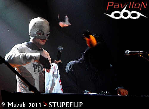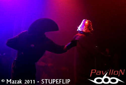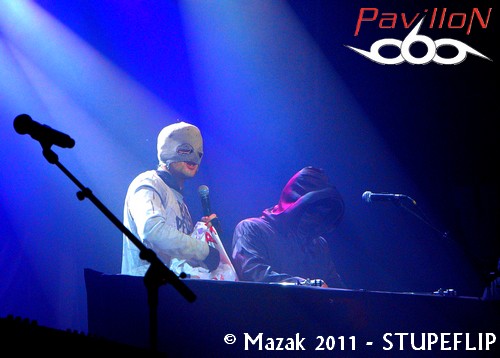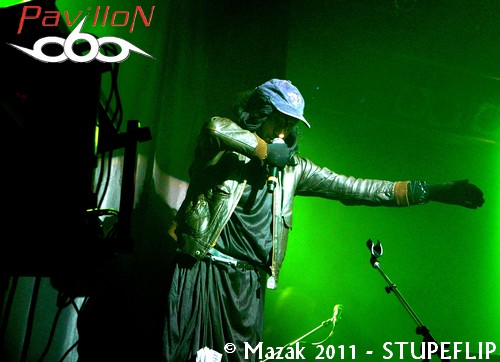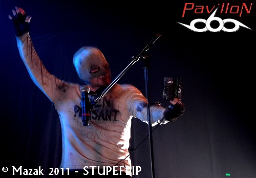 Premier concert de la nouvelle tournée des STUPEFLIP, la salle Victoire 2 affiche complet depuis déjà plusieurs jours. Ha ! Stupéflip ! Véritable OVNI de la « chanson française », bande de ménestrels improbables… Entre Hip-hop et ritournelles réalistes, entre Rock et electro-disco 80’s, entre Punk et pop… Bref, le stup est une entité inclassable qui avec trois albums au compteur et après cinq années d’absence, nous revient sur les planches pour présenter son excellente et toute fraiche galette « The Hypnoflip Invasion ».