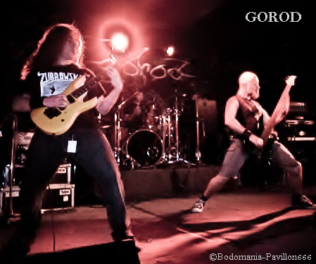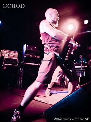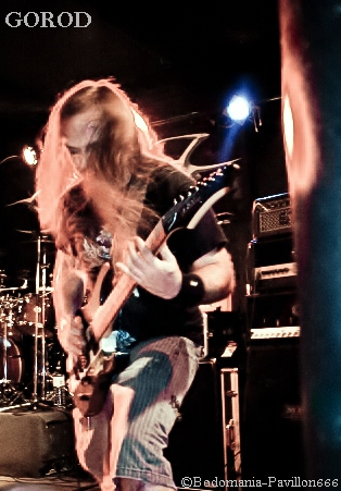 Une demi-heure plus tard, le second groupe de la région prend place, et pas des moindres puisqu'il s'agit des très attendus GOROD. Depuis 1997, on peut dire que les fous furieux du Techno-Death n'ont pas chômé, enchaînant les tournées et les sorties avec succès, les anciens GORGASM ont réussi à se faire un nom et pas seulement dans l'hexagone, puisque ces derniers ont déjà foulé les planches à l’étranger. Une ouverture pour le Hellfest et quelques changements, dont la venue de Samuel Santiago derrière les fûts en 2008, et plus récemment, Julien Deyres au chant, ex-ZUBROWSKA, ainsi que Nicolas Alberny, officiant dans ARCANIA. Et pour ceux qui n’ont pas encore eu l’occasion d’assister au jeu de ce nouveau line-up, je peux vous dire qu’il est tout aussi solide. Leur dernier album en date "Process of a New Decline" sera bien représenté ce soir, cependant, quelques titres issus de leurs précédentes sorties viendront également se greffer, voir débuter le set... Les hostilités commencent avec "Earth Pus", seul composé "Neurotripsicks" qui arbore immédiatement une brutalité sans concession. Il sera très vite rejoint par un doublé dévastateur made in "Leading Vision", durant lequel on assistera à quelques jolis tapping signés Barby, qui ne tient pas en place et prend toujours autant de plaisir à distribuer ses plans acérés et groovy, parfaitement millimétrés. Le plaisir est d'ailleurs autant visible sur scène que dans la salle, qui se chauffe peu à peu, voir même très rapidement. GOROD est à la maison et une bonne surprise nous attend. L'ancien chanteur de la formation, Guillaume, monte partager la scène avec son successeur, afin d'offrir quelques minutes de poésie auditive à l'ensemble. Inutile de vous dire que l'accueil réservé à cette ode à la délicatesse, réunissant les deux frontman, sera des plus chaleureux. Le set continue et nous promet encore un flot de notes mélodiques, agressives et techniques, menées avec une facilité déconcertante par Matthieu et Nicolas, un duo guitaristique redoutable. Mais Nutz n'est pas en reste, en communiquant avec le public et en assurant ses parties avec énergie et puissance, la pression ne retombe pas. Il nous reste à parler de Sam, et là encore, le cogneur manie les changements de rythme avec une grande dextérité. Passant d'un morceau plus progressif et mélodique,"The Path", introduit par une belle instrumentale, à une piste plus sauvage et rentre-dedans, tel "Here Die Your Gods", le groupe nous achèvera à coup de monstrueuses pistes, provenant du troisième opus. Un "Disavow Your God" pour la route, et c'est fini. Déjà?! Que dire de plus? Un énorme set se termine, délivré par un groupe aussi carré que généreux, qui n'a pas encore fini de nous donner de bonnes grosses baffes. On tend bien la joue...