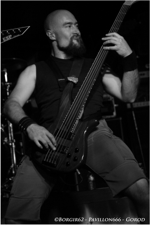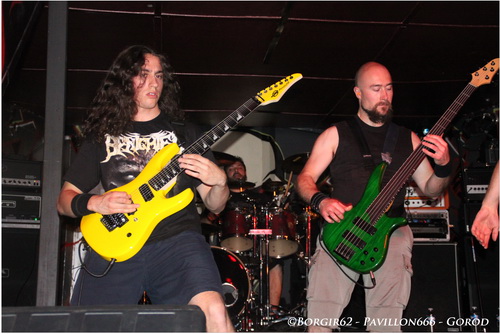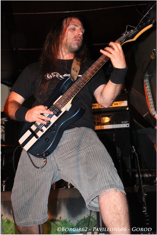 Arrivés sur les coups de 19h, heure initiale de l'ouverture des portes, les membres de GOROD ne vont pas chômer et vont faire leurs balances sans trop se soucier du timing. A titre personnel, je ne trouve pas ça dérangeant, tant le groupe s'est appliqué afin de nous offrir un régal pour les oreilles. C'est donc à 21h, au lieu de 20h prévu initialement, que les excellents Technical Death Metalleux démarrent leur set sur "Earth Pus" face à un public des plus timides. Alors que Gorod appelle à la débauche d'énergie aussi bien sur scène que dans la fosse, ce soir l'ambiance ne sera pas au rendez-vous pour cette première partie, contrairement aux Paradis Artificiels 2010 où ils ouvraient pour Loudblast, face à une quinzaine de surexcités, un an plus tôt, jour pour jour. Si le nombre a évolué ce soir, l'animation n'en a pas fait autant. Avec un line-up relativement récent, qui se traduit par la présence de Nicolas (Arcania) à la guitare et Julien (Zubrowska) au chant, le quintette est des plus à l'aise sur scène, notamment porté par un Barby toujours aussi impressionnant d'aisance. Le public ne lui rend pas ce bon accueil et restera en retrait tout le long du concert, au grand dam des bordelais. Pourtant, le show auquel nous assistons est excellent et la setlist retenue est des plus motivantes. "Gilded Cage", "The Path" (que j'aurai plutôt tendance à mettre en première de part sa petite intro) ou "Programmers Of Decline". En guise d'au revoir, Gorod nous proposera l'exceptionnelle "Disavow Your God" aussi bonne sur CD que sur scène. Un set maîtrisé à la perfection qui aura mérité les applaudissements du public qui, sur les dernières minutes, se réveillera légèrement... Il y a de fortes chances que les prochains passages du groupe se fassent désormais sur Lille.
