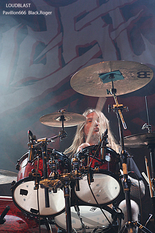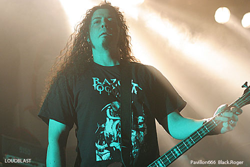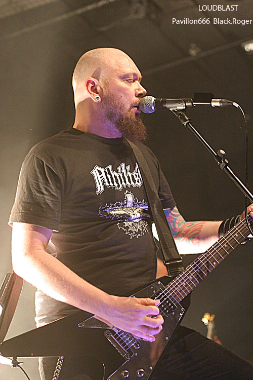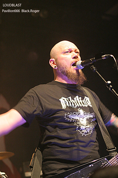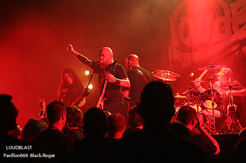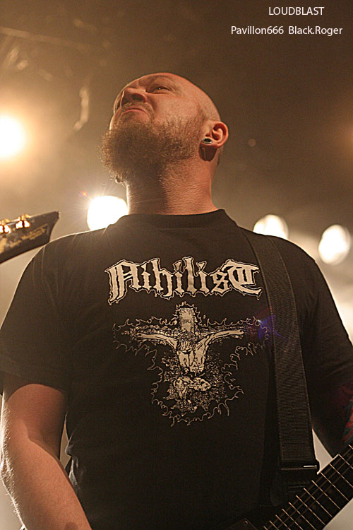 Passons maintenant au métal-de-la-mort de la tête d’affiche en l’occurrence LOUDBLAST. LOUDBLAST qui avait écrit et composé des titres intemporels dans le début des années 90 en précurseurs de la scène brutal-métal Française. Après quelques années de « stand-by », de réflexion aussi, il a décidé depuis l’an dernier de repartir au combat, de remonter au créneau, par passion semble-t-il, et ce soir cela se ressent. Bien qu’étant sceptique sur ce retour, je sois avouer que ce soir les « Louds » nous ont accroché, nous ont collé au plafond avec des compositions du nouvel opus « Frozen Moments Between Life And Death » telles que « Emptines Crushes My Soul », « Frozen Moments Between Life And Death » » et « Nosce Te Ipsum », mais aussi avec des anciens titres «comme « Cross The Treshold » et « Taste Me ». Bien sûr il ne reste de la formation initiale que le guitariste/chanteur Stéphane Buriez à la voix abrasive et l’imposant batteur Hervé Coquerel, mais c’est en quelque sorte l’âme du groupe Lillois. On ne s’y trompe pas, les jeunes découvrent et apprécient, les anciens qui ont connu les 90’s redécouvrent et repartent en guerre avec les death-métalleux frenchies qui cette fois semblent réussir leur « come-back ». Leur prestation de ce soir remet en quelque sorte les « pendules à l’heure » et personnellement je me suis « réconcilié « avec LOUDBLAST, définitivement, excellent !