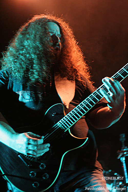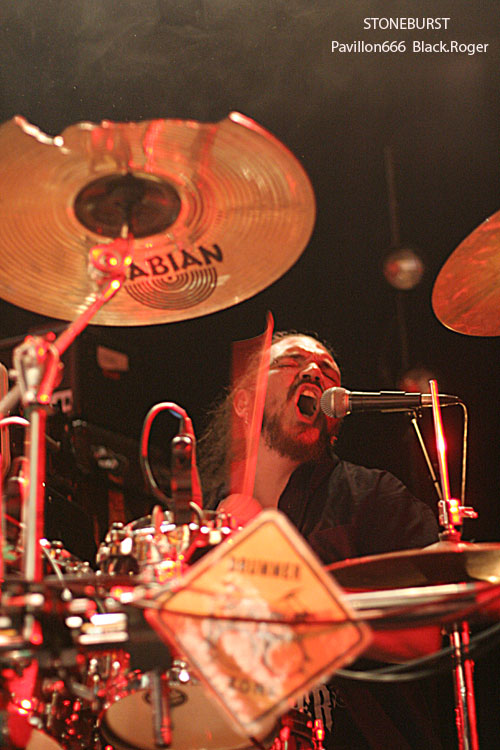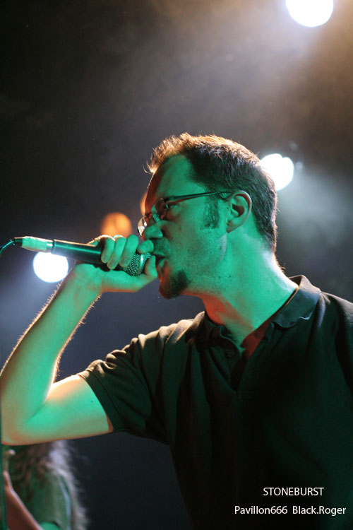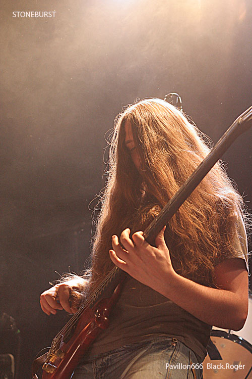 Tiens, maintenant voici d’autres locaux, les fameux STONEBURST qui mine de rien font leur chemin sur la route des concerts, et ce soir retour à Lyon pour nous démontrer qu’ils ont bien progressé en live. C’est un fait, la chorégraphie sur scène s’est bien améliorée. Bonne présence musicale aussi avec toujours cette variété de style qui les caractérisent allant du Stoner au Thrash en passant par des moments calmes plus doom en voix claires. Chaud et froid donc, le frontman sait moduler ses cordes (vocales), ses acolytes assurent aux six cordes et autre basse/batterie, encore un bon batteur tiens ! Le groupe fait participer le public avec son fameux « Control/Hate » et termine avec un reprise intéressante de PRODIGY, pourquoi pas !