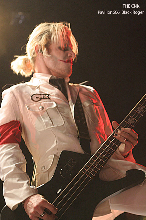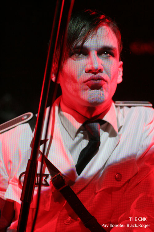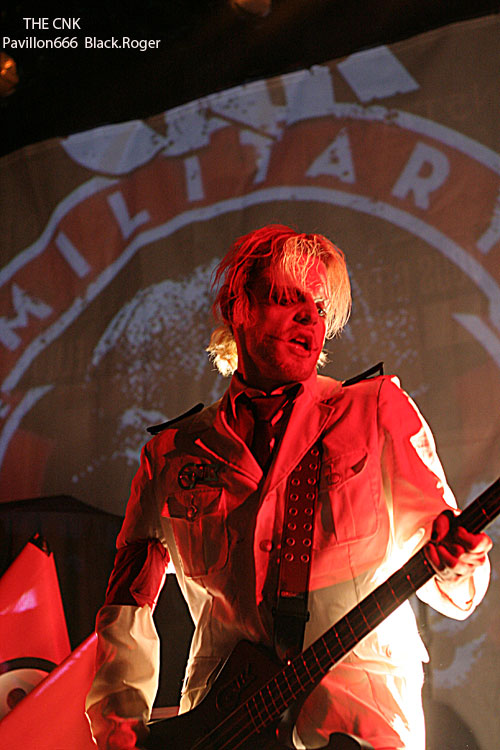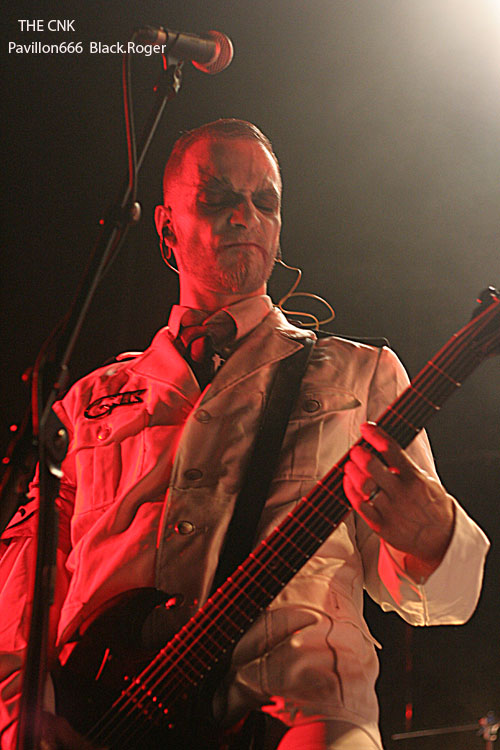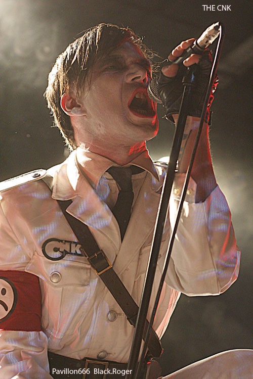 Changement de style, changement d’ambiance après trois combos de la mouvance thrash, avec THE CNK. THE CNK fait son entrée sur les planches avec une musique indus au penchant martial avec uniformes à prendre au second degré, la « provoc » étant de mise pour les Parisiens emmenés par le chanteur Rose Hreidmarr (ex-ANOREXIA NERVOSA). Connus pour leur penchant black/indus, les musiciens vont évidemment nous présenter des titres issus de leur second album « Ode To Joy » inspiré de l’œuvre classique de Ludwig Van Beethoven. Rythmique cyber-heavy, projections en fond d’écran, intensité d’un métal se voulant révolutionnaire, on passe ici à du EMPEROR jusqu’à une reprise de Leonard Cohen. Curieux show, curieuse musique, énergique, criarde, frôlant les beat techno et une haine sous-jacente à prendre en dérision. Dérision, intensité, provocation, sont les maitre-mots de cet électro-métal se voulant avant-gardiste et qui fait de l’effet sur un public dont une partie à fait le déplacement pour eux visiblement.