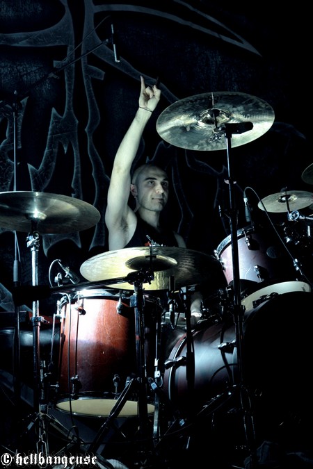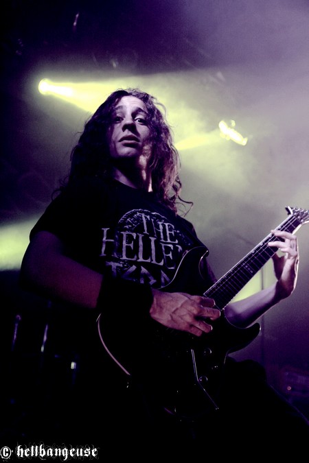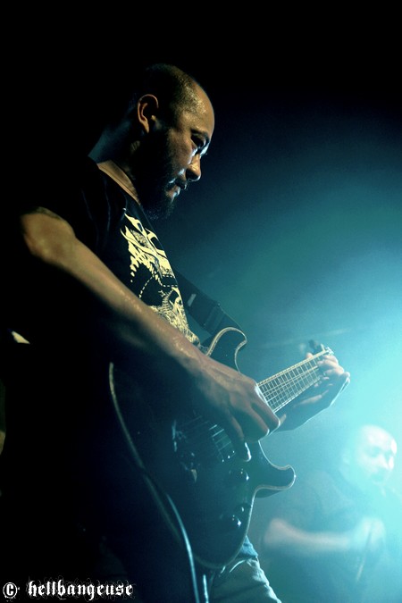 Quelques minutes plus tard, les enragés de KRONOS prennent d’assaut le Nouveau Casino accompagnés de leur tout nouveau chanteur, l’écossais Chris Lewis (Cancerous Womb). Depuis le départ de Kristof en 2009, le groupe semblait quelque peu en stand-by mais avec l’arrivée de cet imposant growleur, la machine est belle est bien repartie. Aidée par un public démarrant une fois encore au quart de tour et investissant la scène à coup de slams incontrôlés, l’ambiance ne faiblit pas d’un poil et la chaleur commence à se faire sérieusement sentir. Décidés à assurer un show exemplaire, les vosgiens nous offrent un son magistral, qui ne tombe jamais dans les aigus et où chaque instrument nous assène brutalement une avalanche de technicité clairement audible. Que demander de plus, quand la fraternité et la bonne humeur sont également au rendez-vous ? L’occasion rêvée pour Julien de GOROD de s’inviter sur scène pour un mémorable featuring sur « Phaeton », où le reste des artistes de la tournée débarquent eux aussi avec des affiches à l’effigie du groupe pour ensuite plonger dans la fosse. Difficile de résister à cette incroyable atmosphère qui tient tout le long du set et à cette musique si brutale et efficace qui en aura rendu plus d’un complètement fou. Du grand art.