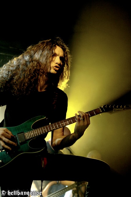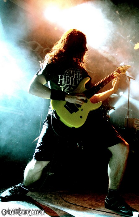 Une joyeuse ambiance s’est d’ailleurs déjà installée dans la salle lorsque GOROD commence bruyamment son set sur « Earth Pus », nous présentant par la même occasion son nouveau crieur, Julien Deyrez (Zubrowska) et son nouveau guitariste, Nicolas Alberny (Arcania). La troupe est visiblement très en forme ce soir et nous assène son Death Technique teinté de Jazz avec un doigté chirurgical qu’une batterie froide et implacable ne fait qu’élever un peu plus. Et malgré la complexité d’un style qui ne s’assimile pas du premier coup, le public réagit instantanément, à l’image d’un pit déjà en action au sein duquel quelques t-shirt à l’effigie du groupe se baladent furieusement. Le ton est donné, de même qu’un son à la hauteur de nos espérances. L’arrivée de Julien au chant n’a pas bouleversé l’équilibre du groupe et apporte au contraire une touche chaleureuse qui contribue à faire monter la sauce sur scène comme dans la fosse. Les compositions s’égrènent dans la sueur, privilégiant principalement les titres extraits du dernier « Process of a New Decline » recueillant les suffrages positifs d’une audience conquise. Ce soir, le spectacle est autant visuel qu’auditif comme nous le prouve si bien ce charismatique Ben qui n’arrêtera pas de maltraiter sa basse même avec l’arrivée sur scène des petits voyous de BENIGHTED et KRONOS venus barbouiller tout le monde de crème à raser. Un set maîtrisé, réussi et furieux qui ne fait qu’annoncer le reste de la soirée.