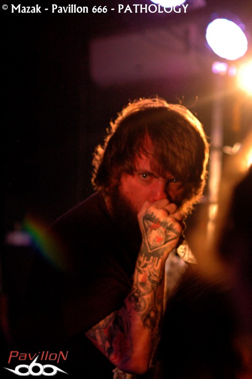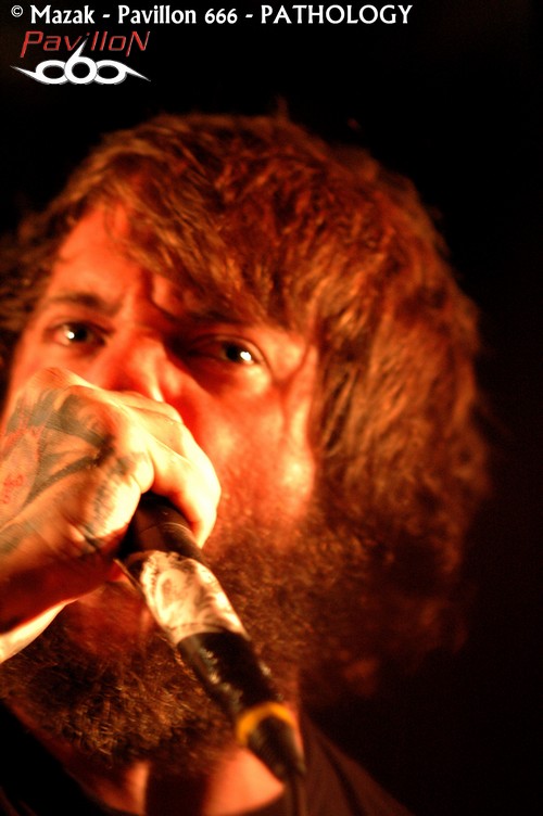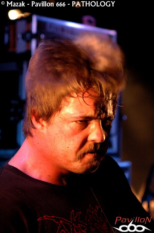 L’heure c’est l’heure et les grindeux de PATHOLOGY viennent perturber le côté bucolique de ce début de soirée. Ce qui frappe de prime abord dans la performance de ces jeunes ricains, c’est cet entrain communicatif : le groupe est là pour en démordre et cela se sent. Apparemment, le combo est aux anges et la prestation est hyper énergique, à la limite du challenge. L’attitude du vocaliste est impressionnante, la hargne au rendez-vous, la technique indéniable. Même si PATHOLOGY n’apporte rien de bien nouveau musicalement et qu’il se cantonne à ne proposer qu’un death-brutal classique entrecoupé de grind « prévisible », il reste néanmoins une bête de scène.