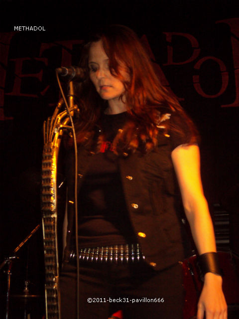 Et donc c’est au tour de “METHADOL” de s’installer. Pour ceux qui ne connaissent pas le groupe celui-ci pratique un bon hard heavy des années 80. A vrai dire à travers leurs compositions on ne peut s’empêcher de déceler quelques éléments propices quand à leurs principales influences musicales à savoir « MANOWAR », « WASP », « IRON MAIDEN » et j’en passe. Etant fan du genre j’étais très heureux de participer à ce concert. Et je n’ai pas été déçu, « METHADOL » a fait un show honnête, très correct, avec un bon son, « Manu » la chanteuse a de très bonnes cordes vocales, les chœurs assurés par « Ghislaine » amplifie les compos, une basse bien exécutée, les deux guitaristes montrent un gros potentiel surtout dans les solos plus qu’efficaces, batteur de très bon niveau, que demandez de plus ? C’est un set très agréable. Après la bande a bien sur joué multitude d’extraits de son nouvel opus : « Haze Of Hell », « Redemption », « Don’t Let Me Down » en font notamment partie. Ensuite « METHADOL » nous a concocté quelques surprises en cette soirée avec tout d’abord un extrait d’une nouvelle chanson (bientôt un nouvel album ?) plus rapide, plus speed qui donne de bonnes sensations. Et puis par le biais de deux reprises des célèbres « TWISTED SISTER » et « IRON MAIDEN » avec « I Wanna Rock » et « The Trooper », interprétées admirablement et avec justesse. Il est l’heure de se dire au revoir et « NO MORE WORDS », titre sortant du lot présent sur la galette de « Anger In Me », vient faire irruption et constitue en quelque sorte l’hymne de la troupe par sa rythmique et ses paroles qui reste ancrée dans nos mémoires pendant une éternité.