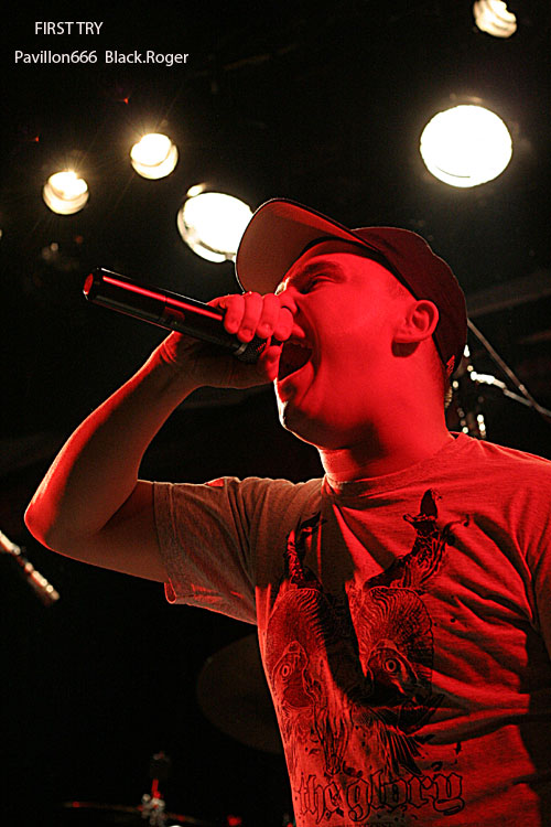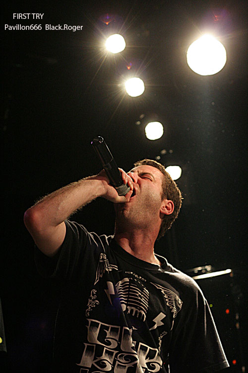 Après la vidéo, le premier groupe à investir la scène, c’est FIRST TRY. FIRSTTRY qui continue dans une voie énergique du hardcore-métal en digne fils spirituel de MADBALL, KNUCKLEDUST ou encore TERROR. En façade deux chanteurs/aboyeurs qui se renvoient la balle dans la plus pure tradition hardcore avec leurs acolytes à la basse, guitare et batterie qui tranchent dans le vif du sujet de bonne façon. Aucune prise de tête, le quintette se fait plaisir et nous fait plaisir avec des envois musclés et des mosh-parts efficaces. En milieu de set, une corde cassée à la guitare permet un interlude dans le public qui s’amuse avec un très gros ballon en mousse dans la salle. L’ambiance est donc installée pour le reste du concert, bravo FIRST TRY on aime votre démarche, alors à bientôt.