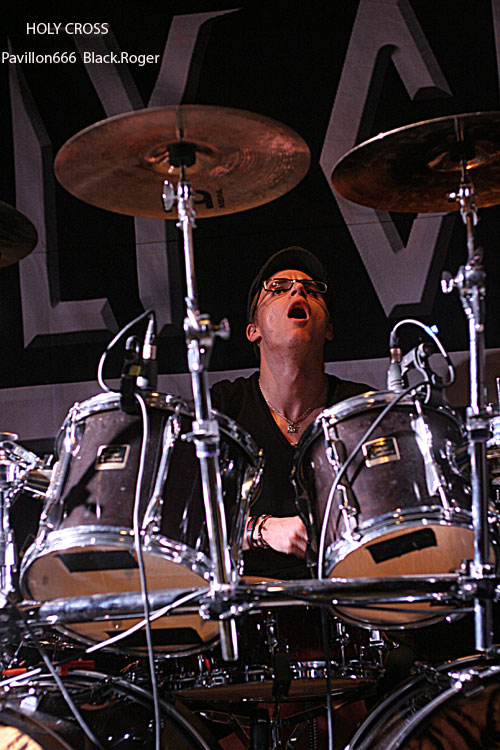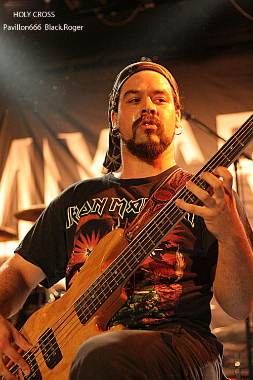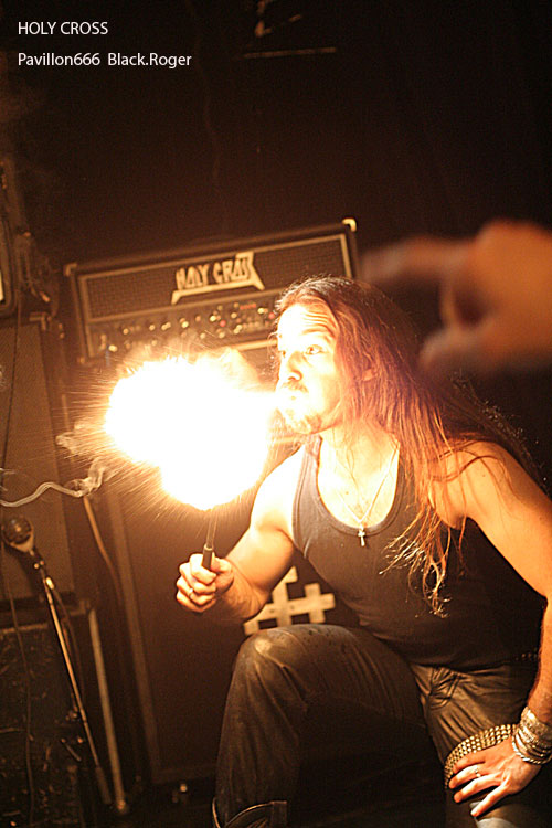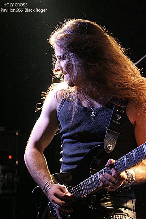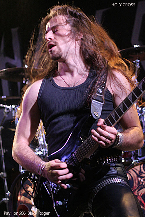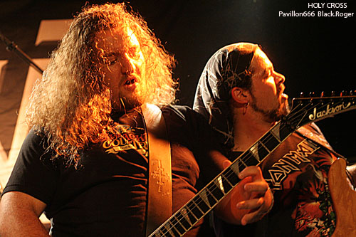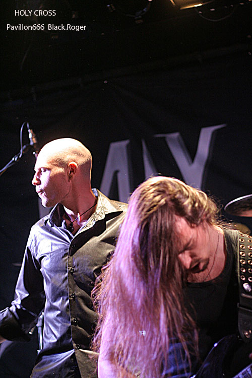 Sur scène on s’active car l’heure à tourné, et donc peu de temps est accordé à l’installation de HOLY CROSS de St-Etienne qui va clore la soirée. HOLY CROSS, pour ceux qui les connaissent pas encore, c’est le heavy-metaaaal dans toute sa splendeur avec tous les clichés se rapportant au genre. Mais ici pas de copie, les compositions sont bien personnelles et éprouvées même si parfois on ressent les influences de JUDAS PRIEST par exemple, notamment au niveau du chant. Ce chant bien maitrisé et remarquable qui fait mouche évidemment. Le duo basse-batterie soutient les deux guitaristes qui se font plaisir de soli en soli toujours bien placés et variés. Les Stéphanois font partie des groupes qui font aimer le heavy car même si au départ vous n’êtes pas forcément amateur du style, après un concert de HOLY CROSS on pourra en discuter. Un peu moins de monde dans la salle car il se fait tard, mais l’ambiance est toujours présente, palpable. Comme quoi ce show fut bien apprécié à sa juste valeur. Encore une formation que l’on apprécie beaucoup sans se lasser au fil des concerts.