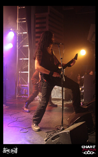 Afin d’accompagner les grecs sur cette tournées française, SVART CROWN a été ajouté à l’affiche. Lorsque les français montent sur scène, on a enfin l’impression que le concert à commencé. S’il y a un nouveau groupe à suivre en ce moment, en France, c’est certainement celui-ci. Le groupe distille une ambiance aussi malsaine que celle d’un MAYHEM mais avec une force digne d’un DISSECTION à la grande époque tout en gardant un esprit thrash et death old school. Bref, les situer vraiment dans le paysage musical n’est pas simple. Par contre, les découvrir sur scène est quelque chose que je recommande fortement à tous ceux qui aiment la metal extrême. SVART CROWN se donne à fond et visuellement, même avec pas grand-chose, le groupe est capable d’apporter beaucoup. Le public ne s’y trompe pas et les premiers pogos et autres slams se lancent très vite. Nul doute que ce groupe lancé tel qu’il l’est ira loin, très loin. En tout cas, c’est tout le mal qu’on peut leur souhaiter.