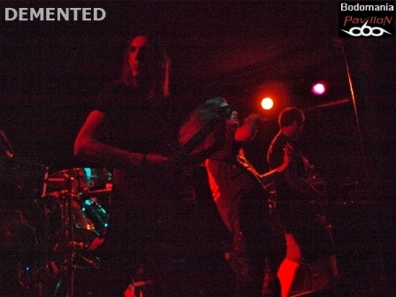 DEMENTED, qui va également pâtir de ce changement de dernière minute… rentrera finalement sur scène, dans une salle, malheureusement loin d'être remplie. 19h15, c'est apparemment trop tôt. Mais cinq groupes nous attendent ce soir, alors la formation bordelaise va quoi qu’il arrive assurer et bien assurer ce premier set. Nous pénétrons au cœur des ténèbres... (cf. les merveilleuses photos à venir). Le Death Metal issu de leur premier album "Fields Of Suffering", réalisé par Mathieu Pascal de GOROD, servira donc d'entrée en matière. En dépit des mauvaises conditions, et d'un court temps imparti, une attaque démente à coup de "Troubles" et de "Sacrifice" investit "Le complexe". Le groupe écume les salles depuis un bon moment, pas étonnant alors, que leur jeu soit devenu au fil du temps de plus en plus carré et puissant. Ce soir ne dérogera pas à la règle, malgré un public restreint et très calme, les musiciens sont en place et nous recevrons alors, une bonne pléiade de blast et variations rythmique violentes signés John. Manu comme à son habitude, enchaîne avec dynamisme le grattage de cordes. 20 minutes c'est peu, alors on oublie les galéjades, ce qui est dommage, DEMENTED étant pourtant aussi bon dans ce domaine! L'efficacité sera donc au rendez-vous avec des morceaux brutaux et directs. Les riffs acérés et autres mélodies seront assurés avec beaucoup d’énergie par Mika et Flo, un duo solide, qui nous fera au passage découvrir quelques nouveaux titres. De son côté, Nessim déversera ses parties vocales haineuse, avec maîtrise. En clair, le groupe aura donné son maximum, professionnel jusqu'au bout en dépit des mauvaises conditions de cette première partie de soirée. Une formation à revoir bien sûr, car le jeu en vaut le coup d'œil et d'oreille! Et la chandelle aussi... Une chandelle qui n'aurait pas été de trop pour éclairer la scène... Mais je m'égare...
