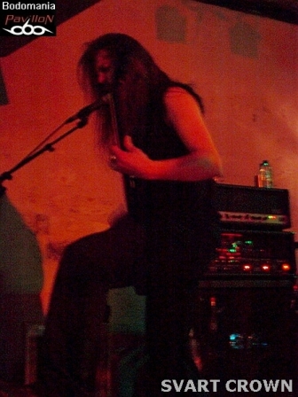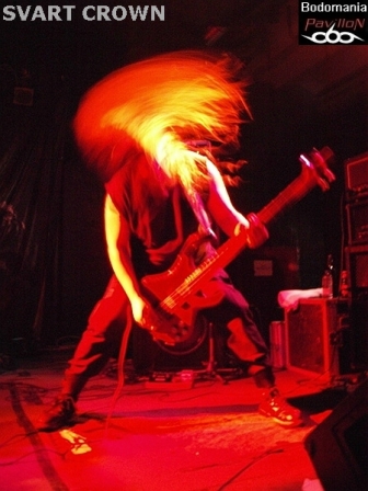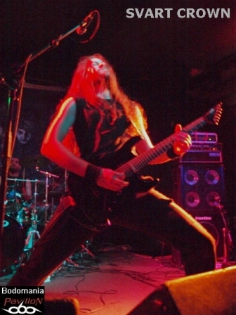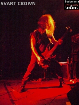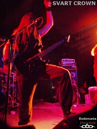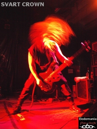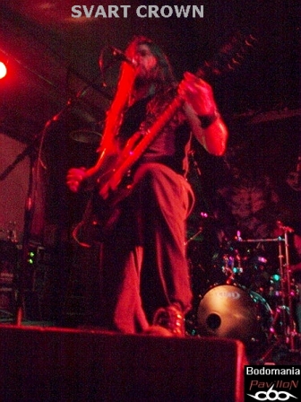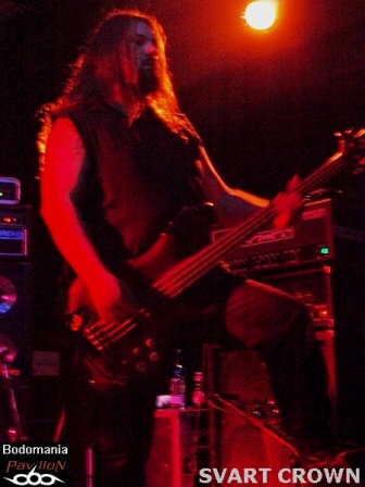 Le défilé continue. Nous approchons des 21 heures et le complexe est enfin bien occupé. Assez en tout cas pour accueillir le prochain quatuor. Celui-là même qui compte à son actif quelques dates en compagnie de SHINING, ENTHRONED, ARTEFACT, GOJIRA, THE ORDER OF APPOLLYON, ou encore MELECHESH et NOCTIFERIA. Il faudra donc compter sur "Ages Of Decay" et "Witnessing The Fall", sorti l'an dernier chez "Listenable Records", pour découvrir le Metal extrême de SVART CROWN. "Where The Lights Ends" prend forme et ouvre les hostilités avant que Gaël Barthelemy (connu pour son travail au sein de BALROG, DIABOLIC, ANTAEUS…) ne distribue quelques blast-beats monumentaux sur "Colosseum". Pour ceux qui n'aurait jamais vu les Nantais sur les planches, quelques mots pourraient brièvement décrire leur jeu: millimétré, imposant, brutal, voir apocalyptique. Le niveau sonore est cette fois monté d'un cran, même de plusieurs, ce qui au final dessert un peu les morceaux, rendant l’ensemble plus brouillon qu’organique. Trop de décibel tue le décibel... Mais l'atmosphère suffocante également entraîné par les riffs lourds et malsains de Clément Flandrois et JB Lebail, n'empêchera pas le public de respirer ce Death Metal teinté de Black à plein poumon. Nous aurons même droit à un petit wall of death savamment orchestré par le vocaliste. Et en parlant de chant et d’arme de destruction massive, les parties gutturales parfaitement rodés sont évidemment à ajouter à la liste. Les accélérations appuyées par Ludovic Veyssiere, n'en finissent pas de déchaîner la fosse. Puis, un monstrueux défouloir nommé "Caligula" prend ensuite les commandes, des fois que le public ne serait pas assez sonné. Musicalement parlant, le set aurait mérité d'être un peu plus diversifié, tant l'ensemble donne l'effet d'un rouleau compresseur sans fin. Mais la démonstration a de quoi convaincre et satisfaire les amateurs du genre, pas de fausse note pour le groupe qui ressort sous l'acclamation d'un public aussi conquis que trempe. Oui, très trempe, allons prendre un peu l'air...