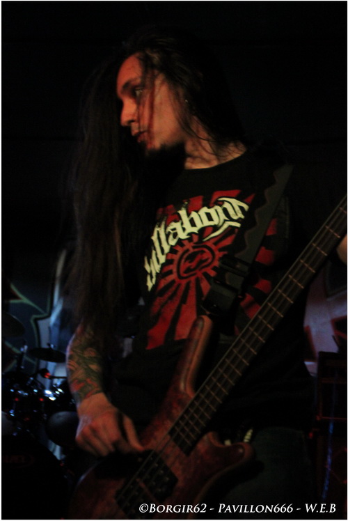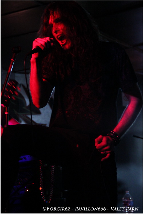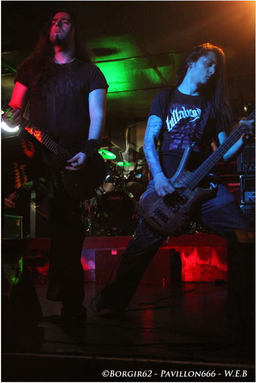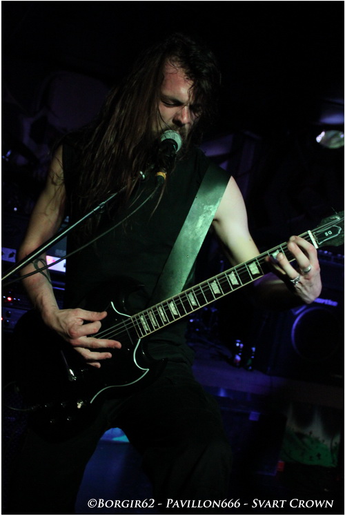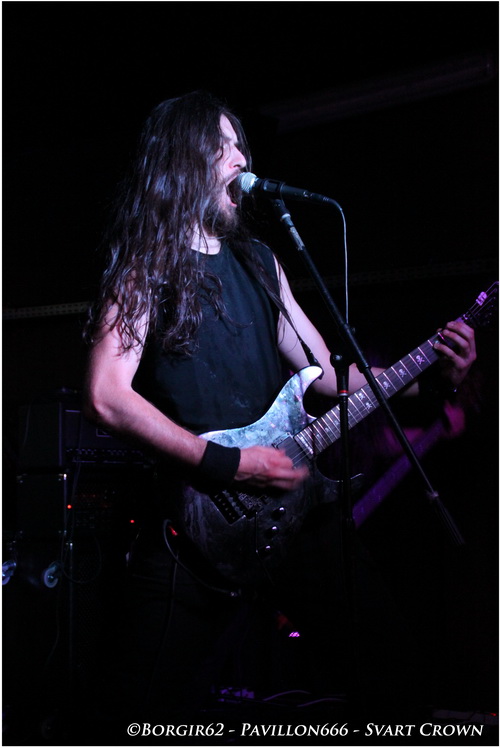 On entre dans le vif du sujet avec ce qui doit être une grosse prestation, puisque SVART CROWN, qui bénéficie d'une renommée grandissante, à juste titre, prend place. Et là, l'horreur s'intensifie... Bien que les membres du groupe demanderont à de nombreuses reprises des réglages, l'ingé-son fera preuve d'incompétence, ou le sourd, que sais-je, et la formation française bénéficiera d'un son que je qualifie sans hésiter d'indigne, voire même d'irrespectueux. Car en dehors de ça, la formation assure un set qui aurait dû être de qualité, ça ne fait aucun doute. A titre de comparaison, lors du Judgment Tour avec T.O.O.A et Livarkahil, j'avais trouvé la formation peu convaincante, relativement statique sur scène, et ne véhiculant pas énormément d'émotions. On change du tout au tout ce soir, et c'est impressionnant de voir une formation aussi redoutable sur scène. Quand vous vous prenez d'entrée un "Colosseum" dans les dents, impossible de ne pas comprendre que ce groupe est talentueux. A grand coup de headbangs, JB et ses acolytes tentent tant bien que mal de transformer cet ensemble brouillon en quelque chose de potable, mais rien n'y fait, quand ça ne veut pas, ça ne veut pas, et malgré leur bonne volonté, les membres de Svart Crown ne pourront réaliser l'impossible. On retiendra donc principalement la richesse des compositions, la débauche d'énergie de Clément et consort,. Néanmoins, et c'est même assez étonnant, le public semble apprécier en dépit de ce problème de son, et aura réservé un accueil plutôt bon (pas une ambiance exceptionnelle, c'était mort de ce coté là, mais les applaudissements accompagneront la sortie de ces malchanceux talents). Bref, Svart Crown méritait tellement mieux.