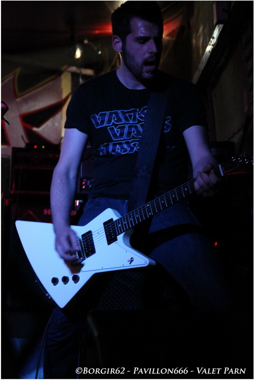 VALET PARN est le premier groupe à se mettre en action. Une petite présentation s'impose: les grecs évoluent dans une sorte de Heavy Progressive, à quelques encablures d'Evergrey notamment. Les Hellènes ont sorti récemment un album, "Riddle Figure" co-produit par Fotis, batteur de Septicflesh. Ce partenariat justifie donc légèrement la présence de Valet Parn sur cette tournée. Et si on tient compte du lien de parenté existant entre Fotis et le chanteur de la formation, on tient là la réelle explication. Car de ressemblances entre Valet Parn et un des 3 autres groupes de la soirée, il n'y en a pas. Pour autant, cela ne semble pas déranger la formation menée par Steve Venardo et elle propose un show qui, dans un autre contexte, serait sans doute mieux passé. En effet, le style déployé n'ayant pas vraiment de rapport avec ce pourquoi le public s'est déplacé ce soir, on sent un léger blocage. On dénotera déjà un gros problème au niveau du son, et même les spots light seront décevants, puisque le groupe évoluera bien longtemps sous un spot bleu et un autre rouge, tout deux fixes pendant la moitié du set... Ce sera également l'occasion de découvrir George Emmanuel, technicien de Septicflesh, et d'apprécier ses prestations au sein d'un groupe (il joue aussi pour Chaostar). A revoir dans d'autres conditions, car ayant jeté une oreille sur leur nouvel album, ça sonne bien mieux en studio que dans la cale de l'Igelrock.