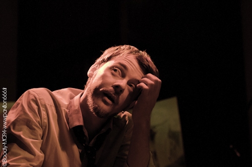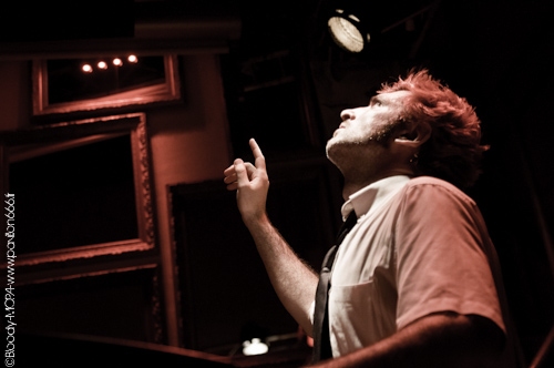 "After You" lance les hostilités et tout de suite, l'ambiance devient très étrange. On est loin de la fureur du concert de février dernier. Tout est relativement calme et ça en devient presque inquiétant. Milka n'éructe pas ses paroles mais les chante (ou les parle) tout en restant assis calmement sur son siège tandis que Yohann derrière ses fûts ne frappe qu'avec une extrême douceur son kit à l'aide de ballai. Si cette version acoustique est très déconcertante au début, il y a quand même une chose qui ne change jamais. Tristan est le maitre de cérémonie et le restera le long du concert. Il sera le seul à jouer ses partitions intégralement et délectera ses spectateurs de son immense talent musical. Car même si ce qui se déroule sous nos yeux nous prend de court il faut avouer que le trio pour sa (fausse) première acoustique se débrouille extrêmement bien. Leur passé musical dans d'autres projets se ressent très bien ici car à en voir les improvisations qu'ils se permettent d'amener dans leur jeu, il n'y a pas de doute sur le fait que ces garçons sont très professionels. La façon avec laquelle Milka introduit les morceaux relève d'une presence (et aisance !) scenique incroyable. Jouant avec les mots et taquinant avec classe le public, il se revèle être un frontman d'exception. Malgré cette aura magique qui l'entoure il ne fait pas pour autant d'ombre à ses compères et n'oubliera pas de les mettre sous les feux des projecteurs. Chaque musicien aura son moment de gloire comme Tristan qui fera frémir le public tout entier sous les accords d'"Anchorage". Il en sera de même avec Yohann qui démontrera (en plus de son talent artistique) son talent musical avec le morceau "Red". Morceau qui par ailleurs a été écrit pour sa personne car ce dernier aime peindre des toiles fortement teintées de rouge. Ce moment fût le moment le plus nerveux du set car ce morceau n'est pas le plus acoustique qu'il soit et la rythmique de batterie bien quelle soit destructurée reste assez imposante. Dès lors, Milka nous annonce que l'histoire va bientot se terminer et il sera inutile de demander un rappel. MOPA reste MOPA que ce soit en acoustique ou non, et par conséquent ne change pas ses habitudes. "Am I An Island" et "Just Like You And I" seront les deux derniers chapitres de cette superbe histoire. Ce final verra Tristan trouver le moyen d'entrer en transe jusqu'à en balancer son fauteuil au sol tandis que Milka monte marche après marche les escaliers en eructant des "Just like You And I" sans micro jusqu'à sa disparition totale dans les loges.