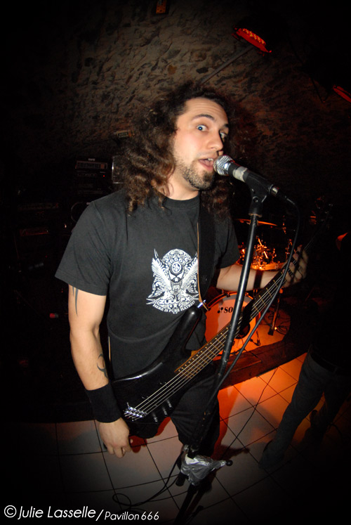 On les connait bien sur Lyon & leur venue a ramené bien du monde. C'est donc PI qui cloture cette soirée avec son Death Métal Expérimental. Comme à leur habitude ils ont ramené leur stroboscope, leurs spots bleus & leur machine à fumée (n.b. Rappelons que la salle du Trokson est la cave située sous le bar, ce qui rend l'évacuation de la fumée assez difficile, un set entier avec une fumée intense c'est quand même fort désagréable). Le décor est planté, le set peut commencer. PI est un groupe toujours aussi impressionnant à voir & leurs morceaux font bien bouger dans la fosse. Pas de grande originalité dans les compos de ce groupe mais les fans de MESHUGGAH sont ravis.
