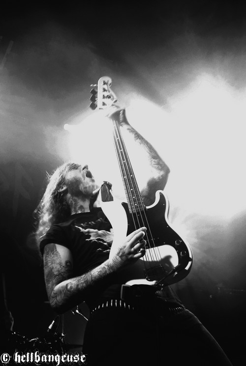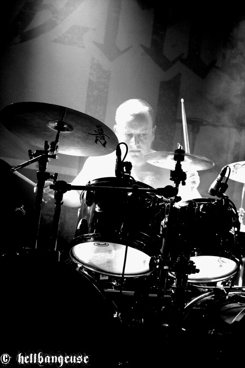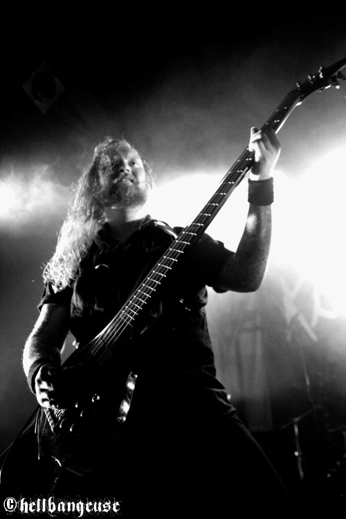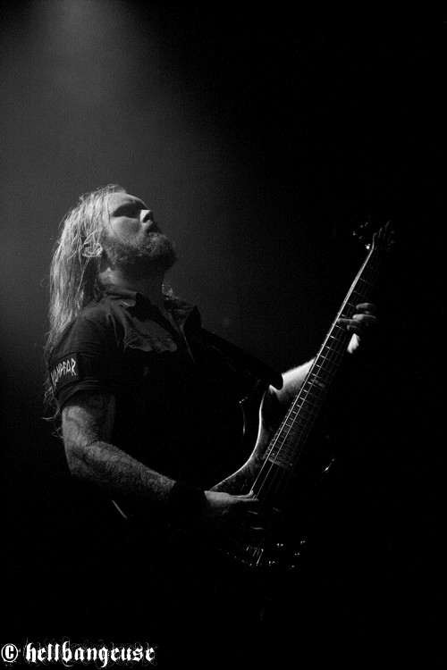 L’orage passé, quelques malpolis se permettent déjà de quitter la salle ; pourtant VREID est loin d’être un groupe d’amateur et ce n’est pas la bonne partie des anciens membres de WINDIR ici présents qui prouveront le contraire. Avec un nouvel album sobrement intitulé « V » à défendre, VREID commence son set sur les récents « Arche » et « The Blood Eagle », histoire de bien poser le décor. La majorité du show sera d’ailleurs axée sur ce dernier album, et le seul à sembler profiter de l’instant comme un gamin sera Hvàll (basse) arborant un sourire indéfectible dès le début de la prestation et n’en oubliant pas pour autant de nous faire profiter de son jeu très visuel à la basse. Malheureusement pour le groupe, le public se révèle globalement d’une humeur plus que molle, un peu comme si KAMPFAR avait déjà drainé toute l’énergie disponible ce soir. Ce manque de motivation finit d’ailleurs par se répercuter sur scène où l’on sent que les artistes se mettent au fur et à mesure en pilotage automatique, histoire de ne pas être obligé de parler à un mur. Au bout d’une petite une heure de set, c’est finalement l’impression d’avoir assisté à une prestation en demi-teinte qui persistera effrontément.