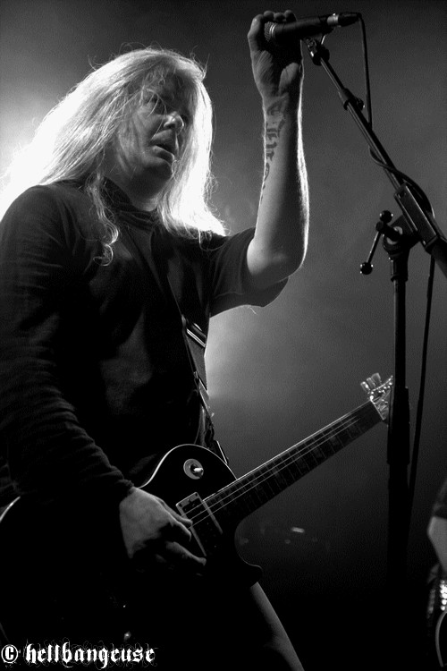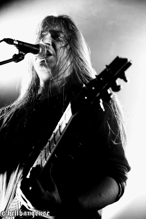 Le Nouveau Casino s’est déjà largement vidé lorsque SECRETS OF THE MOON arrive sur scène. Bien que cela fasse presque deux ans que le groupe n’a pas mis les pieds dans la capitale, peu de monde dans la salle semble ce soir se réjouir à propos de ces retrouvailles. A la faible lumière de quelques bougies qui s’éteindront bien vite (secourues, merci bien, par les lights de la salle) le set se déroule lentement, mollement, sans grand point d’orgue ni même communication, tant chacun des quatre musiciens reste concentré sur son propre rôle et finit par oublier un public qui a du mal à rentrer dans le jeu. Pourtant, ce n’est pas l’inspiration qui manque à la musique de SECRETS OF THE MOON et pour peu que l’on fasse abstraction de l’ambiance et du visuel entourant le show, c’est un monde à part qui vient nous prendre par la main, aussi inquiétant qu’envoutant dans ses nuances et ses affirmations. Au final, c’est en quelque sorte à une prestation élitiste que le public assiste, tant l’investissement nécessaire pour comprendre la profondeur et la sincérité de chacune des compositions fait office de repoussoir affûté.