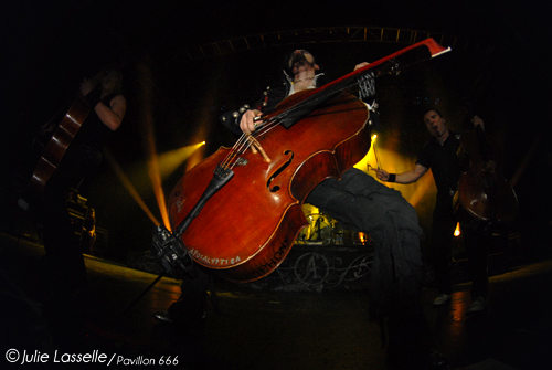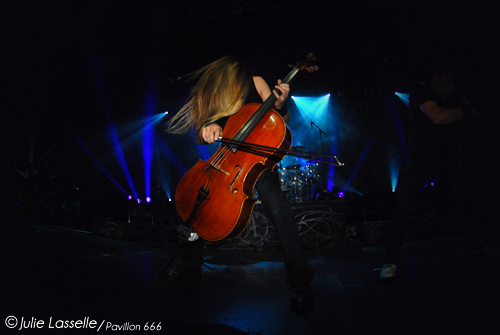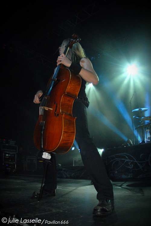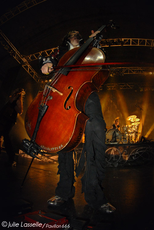 Les fans sont nombreux ce soir ou plutôt devrais-je dire nombreuses puisque le public est majoritairement féminin! Le charme des Finlandais fait des ravages visiblement mais parlons musique.. APOCALYPTICA commencera son set par "Quasimodo" & enchainera avec "2010" & "Grace". Vient ensuite l'excellente reprise de METALLICA "Master of puppets" qui fera l'unanimité dans la salle. Je dois bien avouer que les Finlandais & leurs violoncelles transmettent une telle énergie dans ce morceau qu'on en oublierait presque l'originale de James & sa bande. Pour les deux morceaux suivants ("End of me" & "I'm not Jesus") c'est Tipe Johnson qui vient poser sa voix & accompagner APOCALYPTICA. La performance vocale de Tipe reste un peu en dessous du niveau du groupe mais le public en redemande. Pour le reste de leur set ils continuent à alterner compositions, reprises de METALLICA & SEPULTURA. APOCALYPTICA a donné 1h30 de show impressionnant & a reconquis son public. Le groupe parle bien avec son public & Eicca Toppinen nous fait même part de ses progrès en français qui en feront rire plus d'un avec sa prononciation de "Entrecôte" ou "Il est quelle heure?". Pour ceux qui resteraient septiques sur le fait de voir un set composé à moitié de reprises, je dirais qu'il faut tout simplement le voir.