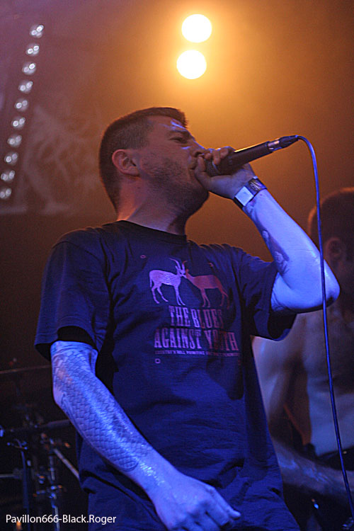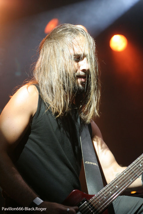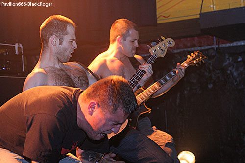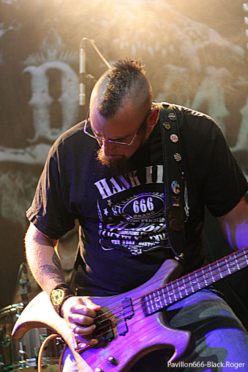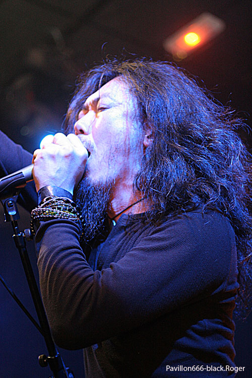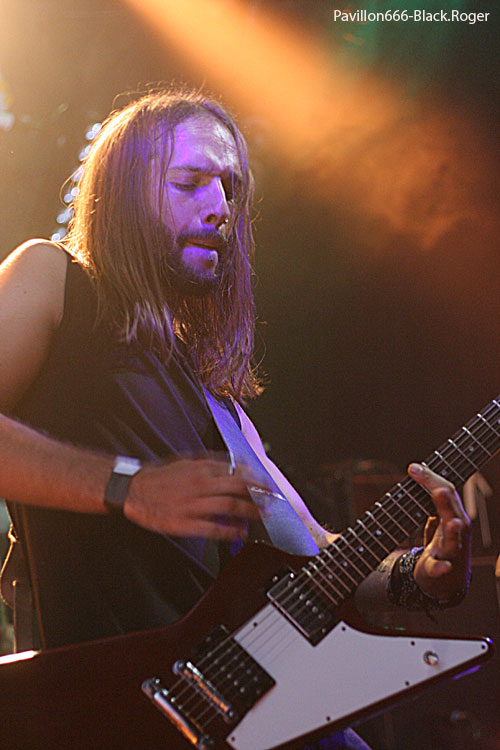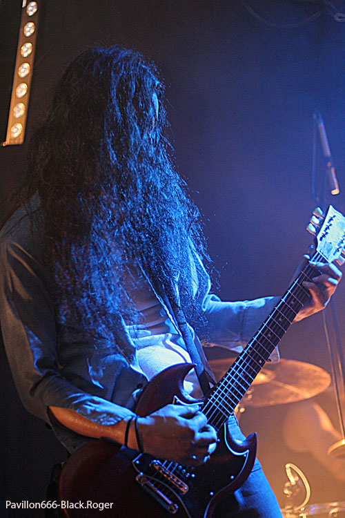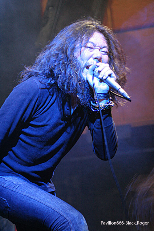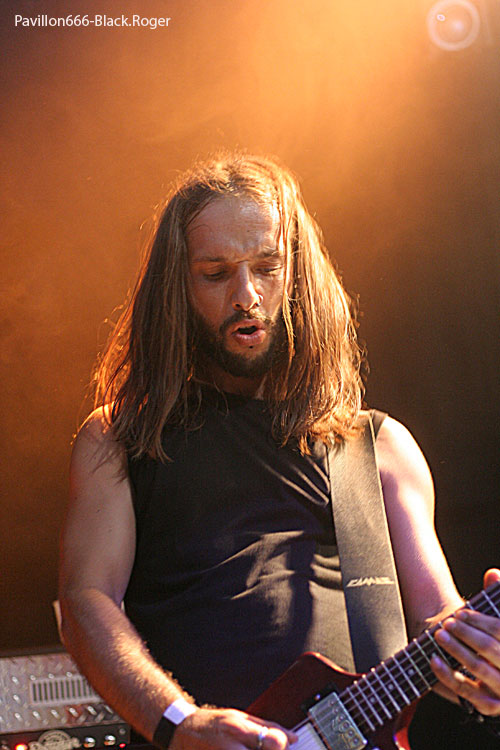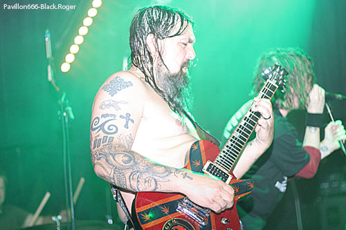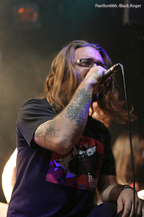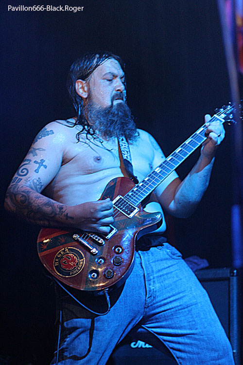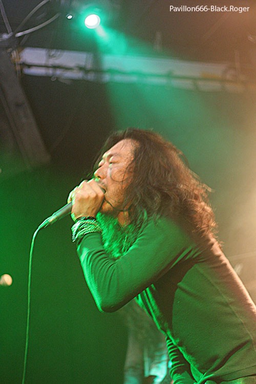 Faisons connaissance maintenant avec le doom psychédélique des Japonais de CHURCH OF MISERY. Le fantôme de BLACK SABBATH se profile sur les murs de l’Ampérage lorsque débute le set des fils du soleil levant. Ici pas de manga, pas de « visual key », mais des improvisations lourdes et heavy en diable (pléonasme ?). Un chanteur possédé par ses textes, naviguant dans une fumée épaisse à l’image d’un ELECTRIC WIZARD avec des riffs massifs à la SAINT-VITUS, voilà limage première. La grosse basse Rickenbaker racle le plancher de la scène, les amplis grésillent, la batterie nous martyrise les cellules grises avec des tempos plombés s’envolant parfois dans des tentatives plus « speed » où le chanteur régurgite des vocaux exhumés des années psychédéliques propres aux seventies. Prit dans la tourmente on frôle par moment la chute dans un état de névrose avancé. Fort, puissant, destructeur de neurones, le doom des japonais est efficace tout en étant profondément émotionnel avec des élans très « vintage ». Set hors du temps et de l’espace, set mémorable et mémorisable, sauvagerie primaire aussi, ce soir la claque fut Nipponne tout simplement