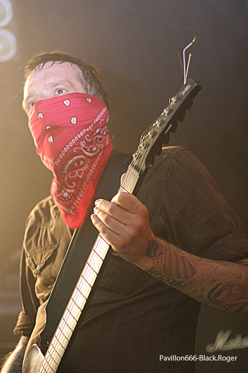 Les Lyonnais de GOD DAMN s’installent et la salle se remplit enfin. L’ambiance va être au rendez-vous et c’est très bien. Car ce soir les « mother fuckers », les « stoner addicts » que l’on ne présente plus en France vont être filmés pour un futur DVD live, le premier. Tout le monde s’échauffe avec « Under Pressure », « 90’s » et « Never look ». Dans la salle ça vole de partout, la sueur commence à couler à flot, alors il faut se désaltérer. Heureusement les God Damn ont tout prévu et viennent offrir à ceux du premier rang des gobelets remplis de « jack », riche idée. Le set continue avec ses aléas aussi comme une corde cassée à l’énorme basse de Charly, mais on ne s’arrête pas, c’est rock n’ roll. On repart bien vite avec « Old Days, « All In » (de Crowbar ) et « No Way ». Les guitares « miaulent », Bij malmène ses futs et Rénat’ dirige les opérations en vrai “red neck” endiablé. On termine avec Cheapest Hate » et « landing For My Pride ». Le cerveau en ébullition, le public fait ce soir un triomphe aux Lyonnais, ce qui est largement mérité, aucune contestation possible.