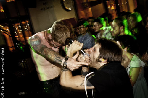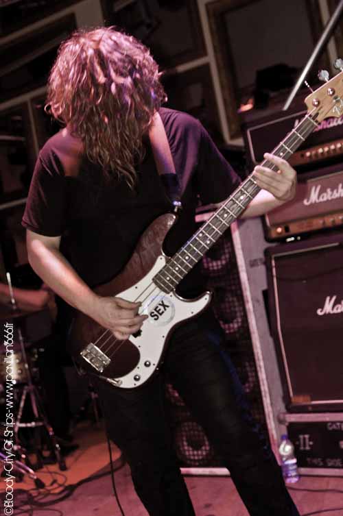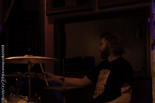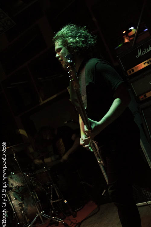 Quelques minutes après ce contretemps qui a donné un coté légèrement chaotique à la situation, les roadies s'activent pour installer au plus vite la scène pour City Of Ships. Fraîchement débarqué il n'y a même pas 10 minutes après leur arrivé dans la ville rose, City Of Ships n'aura eu que le temps d'effectuer ses balances pour ensuite assurer leur set. Point de concentration en coulisse donc. Là n'est pas le problème car City Of Ships n'en est pas à sa première galère rencontrée et vont tout de même assurer un set plus qu'explosif ! City Of Ships c'est du décontracté. Ca joue sans se poser de question et avec le sourire ! Tel est l'impression qu'il en sera ressorti de ce soir là. En seulement deux chansons, le combo a mis le public entier dans sa poche grâce à des compositions nerveuses et musclées qui ne laisse pas de répit. Leur set list mettant l'accent sur leur dernier album en date "Look What God Did To Us", City Of Ships ne vas pas faire dans la dentelle. Malgré un son trop fort, les Américains nous ont gratifiés d'une prestation de haute volée. Mis à part quelques connaisseurs présent dans la salle, le reste du public a été littéralement scotché par le mur sonore qui c'est dressé face à eux. Entre une guitare mélodique mais grasse au possible et un son de basse vraiment énorme les "gratteux" s'en sont donné à coeur joie. Mais pour rendre ce mur sonore encore plus lourd , City Of Ships compte dans ses rangs une arme secrète : son batteur. Faisant dans le "simple" mais nerveux, son jeu demeure pas moins violent, lourd et efficace. Son kit a tenu l'intégralité du set mais l'on se demande comment vu avec quelle puissance il portait les coups... Comme toutes les bonnes choses ont une fin, le set de City Of Ships touche malheureusement à sa fin. Tout le public est complètement abasourdi et applaudi avec beaucoup d'entrain un groupe que l'on a déjà envie de revoir. En espérant les revoir le plus rapidement possible !