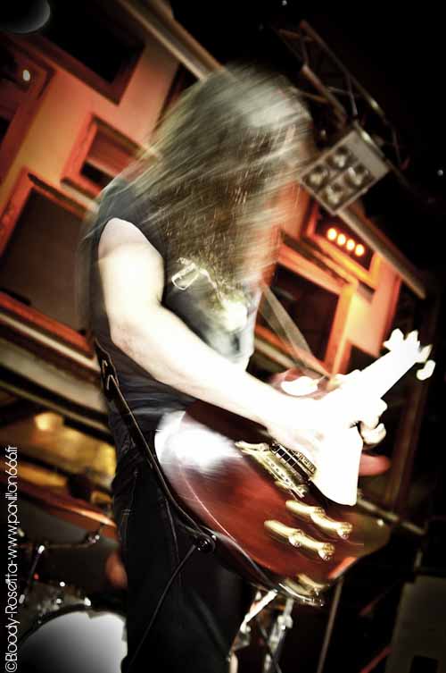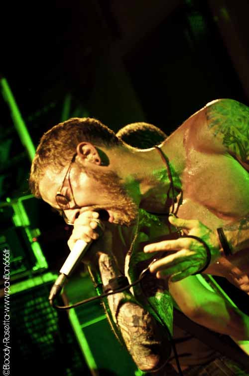 Dernier sur la liste à nous embarquer pour un voyage intersidéral : Rosetta. La foule croissante s'étant rapprochée au plus près de la scène pour être en parfaite communion avec la musique du combo, le voyage peut enfin commencer. Et c'est avec le titre "Red In Teeth and Claw" que le décollage ce fait. Lent et lourd, Rosetta est en train de préparer le terrain avec brio pour nous déployer à grand coup de hurlements leur post-metal dont eux seuls en détiennent le secret. Ce soir, point d'album joué en intégralité mais Rosetta préfèrera un best-of de leur carrière. Et c'est plutôt bien vu car l'enchaînement de certains morceaux apporte une nouvelle dimension au set. "Renew", "A Determinism Of Morality", "Je N'en Connais Pas La Fin" sont des merveilles qui démontrent l'énorme potentiel (sous-estimé) du quatuor. Ce qui frappe chez Rosetta, c'est cette façon de jouer. Relativement calme, le rendu n'en est pas pour autant moins violent. A en voir avec quelle tranquillité le bassiste soutient les accord martiaux de Matthew (guitare) un contraste (d)étonnant se fait sentir. Evidemment il fallait bien que quelque chose vienne perturber la soirée. Au bout de quelques minutes, le son du micro était devenu inaudible. Mais qu'à cela n'en tienne, Michael Armine ne va pas ce laisser abattre pour autant et continuera le set sans micro (!). Puis dans un concert de Rosetta il faut savoir que la musique ce suffit d'elle même. Si les hurlements alimenté de delay renforce le coté percutant de leur musique, l'absence de cris ce soir n'en sera pas très dérangeant. Il continuera malgré tout à hurler les paroles de toutes ses forces tout en étant en transe devant le public. Car il faut savoir que si ses compères derrière leurs instruments sont relativement calmes, Michael est le plus communicatif de tous. Faisant plus qu'hurler les paroles, il vit ses textes, ces derniers prenant possession de son corps durant l'intégralité du show. Venant en plein dans le public faire participer les fins connaisseurs des paroles, c'est dès lors que le leader des Nephalokia (et organisateur de la date) et autres spectateurs viendront se déchirer tour à tour les cordes vocales sur les ambiances planante de leur musique. L'échange bat son plein et le frontman n'hésitera pas à remercier le public à de nombreuses reprises.